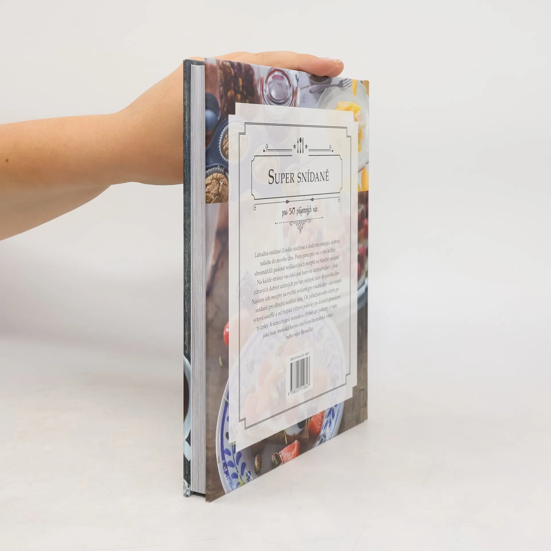Pro 50 příjemných rán. Lahodná snídaně člověka nadchne a dodá mu energii i dobrou náladu do nového dne. Proto jsme pro vás v této knížce shromáždili padesát nejlákavějších receptů na báječné snídaně. Na každé stránce vás čeká jiné barevné dobrodružství, plné zdravých dobrot určených pro ten nejlepší start do nového dne. Ať máte chuť na krásně dlouhé a ospalé nedělní ráno nebo na rychlou zdravou snídani ve všední den. Od slavnostního palačinkového dortu po sýrové soufflé a od thajské rýžové polévky po domácí granolové tyčinky. A samozřejmě, že v této kuchařce nemohou chybět ani pokrmy z vajec, jako jsou mexická huevos rancheros (farmářská vejce) nebo vejce Benedikt.