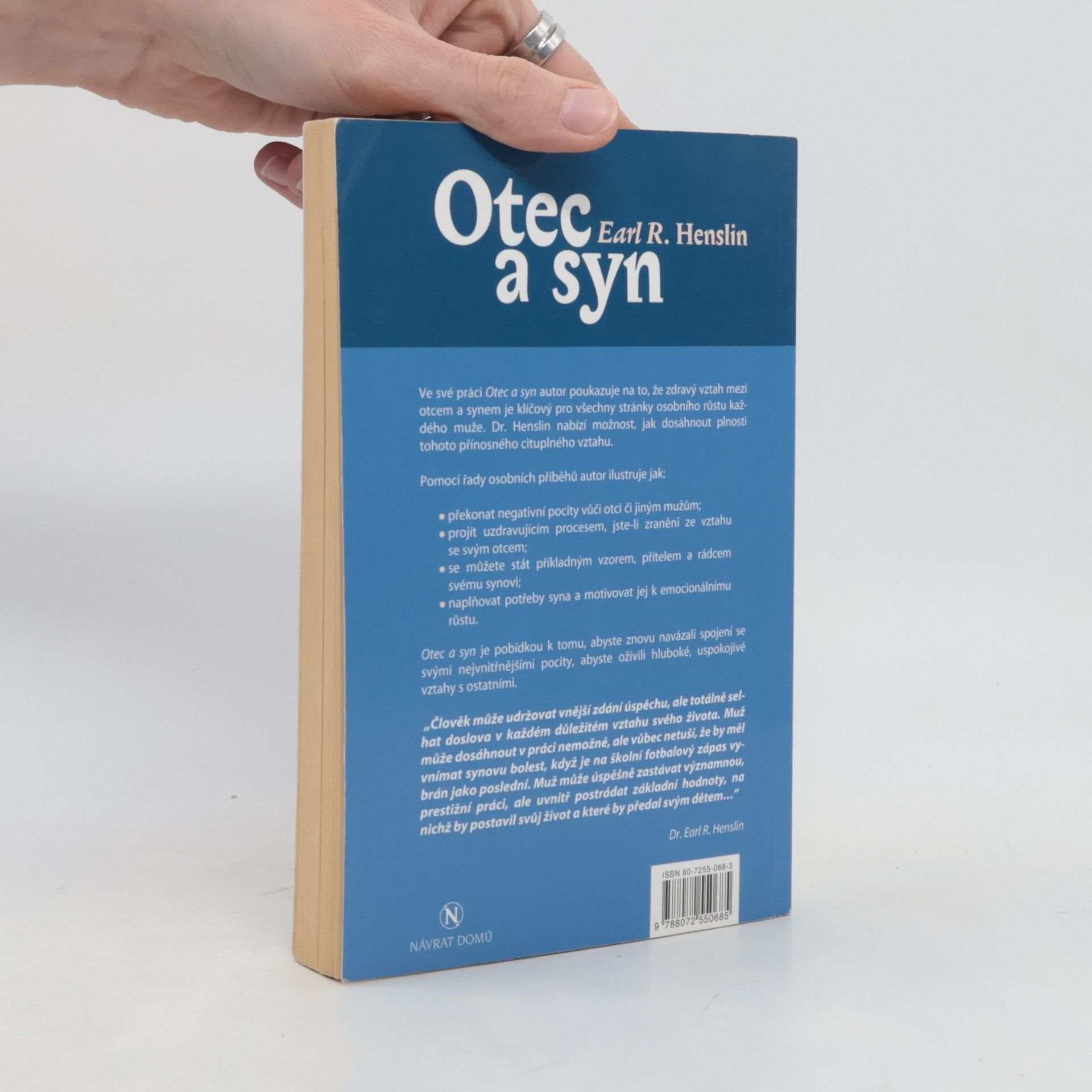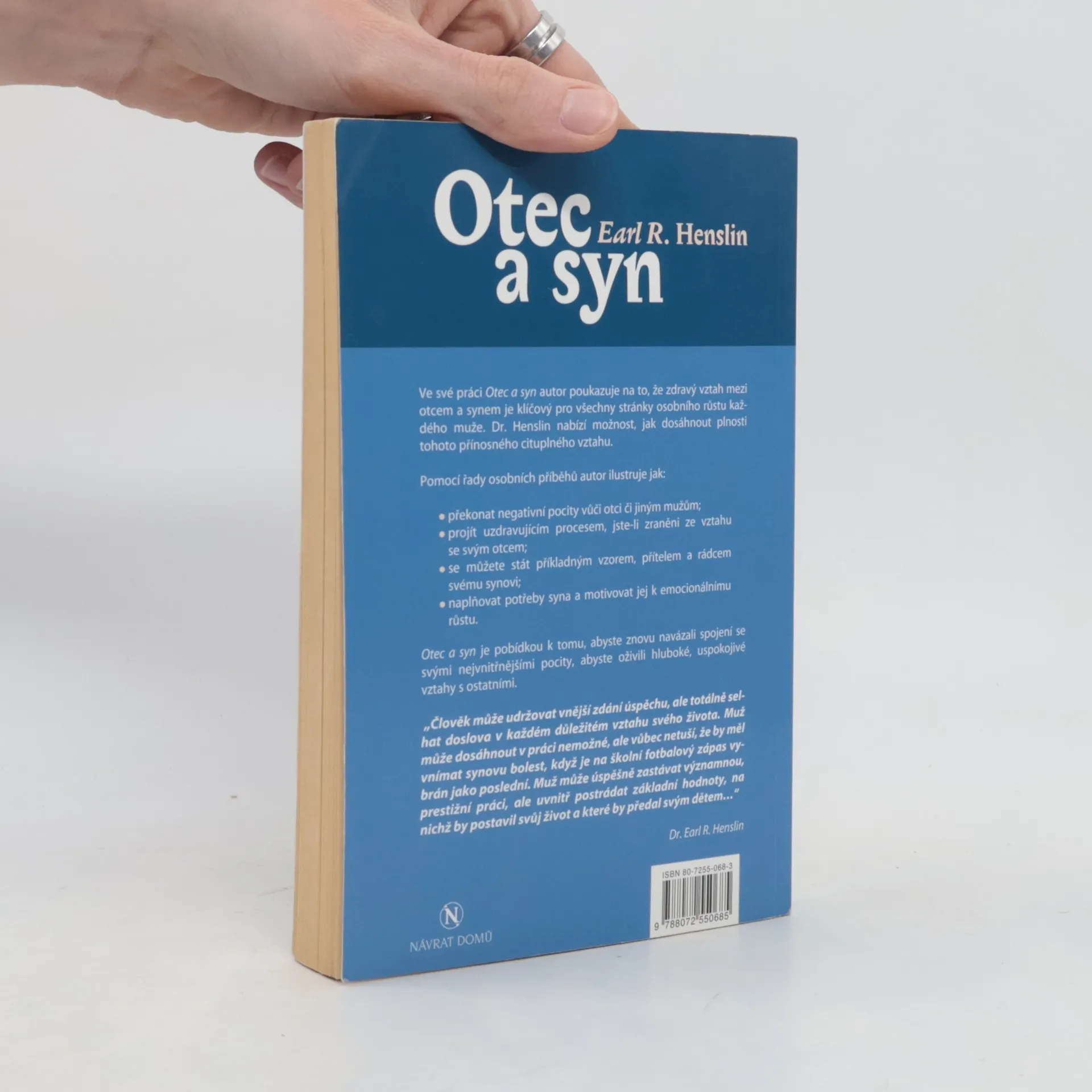 Ve své práci autor poukazuje na to, že zdravý vztah mezi otcem a synem je klíčový pro všechny stránky osobního růstu každého muže. Dr. Henslin nabízí možnost, jak dosáhnout plnosti tohoto přínosnéího cituplného vztahu. (oficiální text vydavatele)