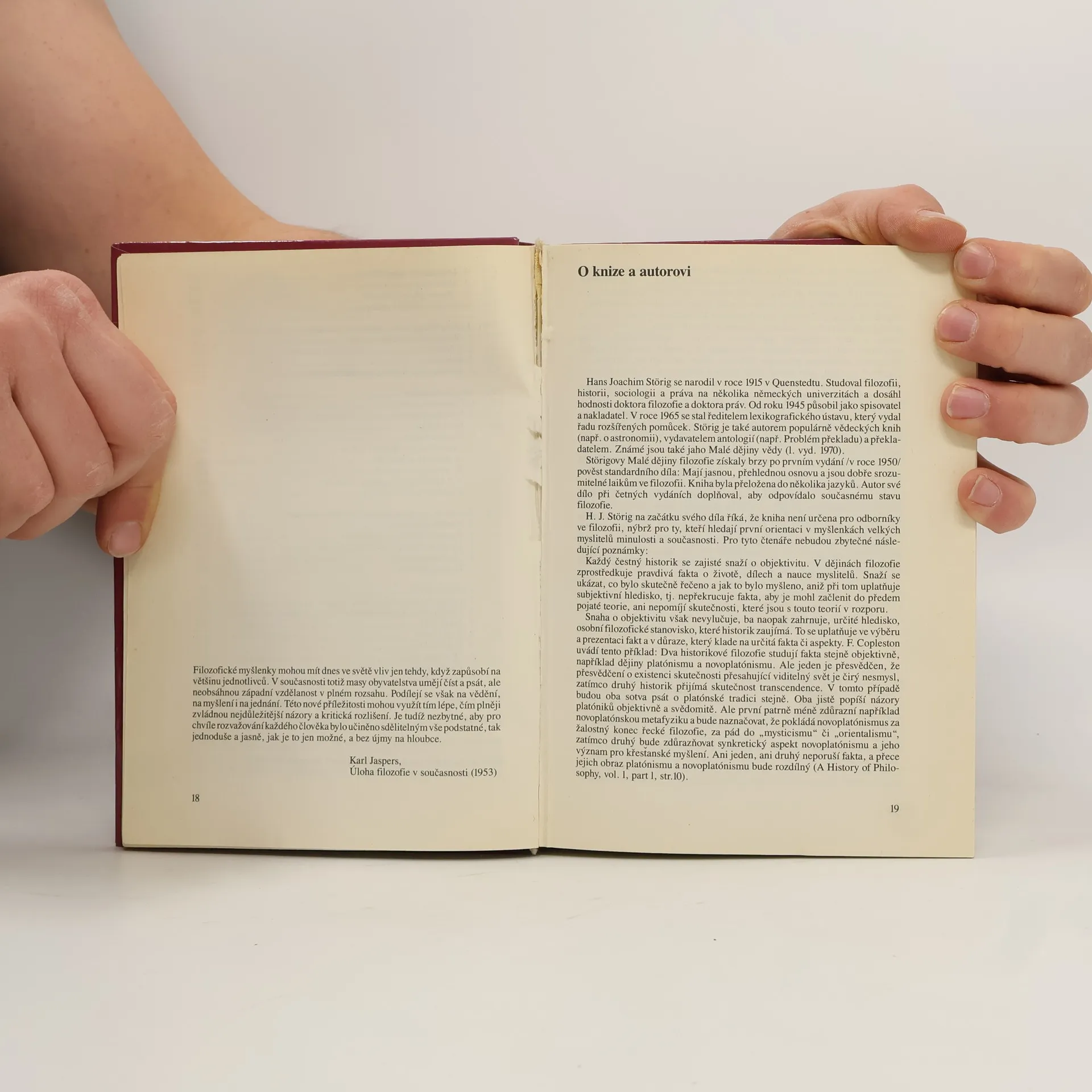 Dějiny filosofie svědčí o tom, že lidé se ptají nejen na věci, které potřebují a běžně užívají v denním životě a při své práci, ale také na skutečnosti, které míří mnohem dále. Nakonec shledáváme, že to vůbec nejsou otázky bezvýznamné: Co jsme schopni poznat? Jsme svobodní? Má naše existence nějaký smysl? Co je umění? Proč vůbec je něco? Dějiny filosofie také ukazují, že lidé si tyto otázky kladou už od pradávna a že vyvinuli obrovské úsilí, aby na ně odpověděli. Dějiny filosofie nám rovněž plasticky představují, že odpovědi filosofů jsou velmi rozdílné, přesto nám dávají tušit, že za množstvím koncepcí a systémů se nachází skrytá jednota. Toto vše ukazuje jednoduchou a čtivou formou Störigova kniha Malé dějiny filosofie, která patří k nejúspěšnějším dílům tohoto druhu nejen u nás, ale i ve světě. Německý originál vyšel poprvé v roce 1950: autor jej následně doplňoval a přepracovával a v jeho rodné zemi se dočkal už sedmnácti vydání. 2., rozšířené vydání