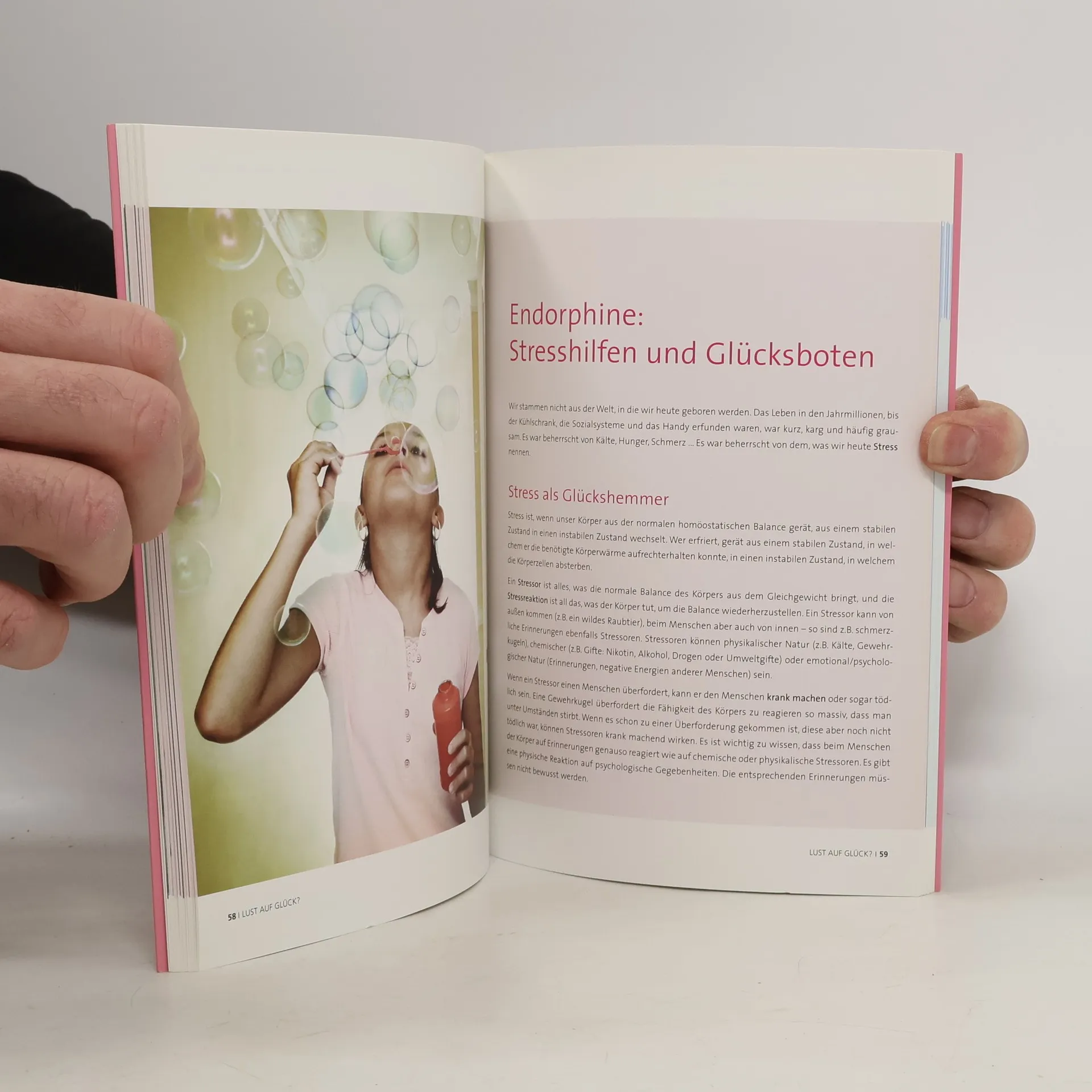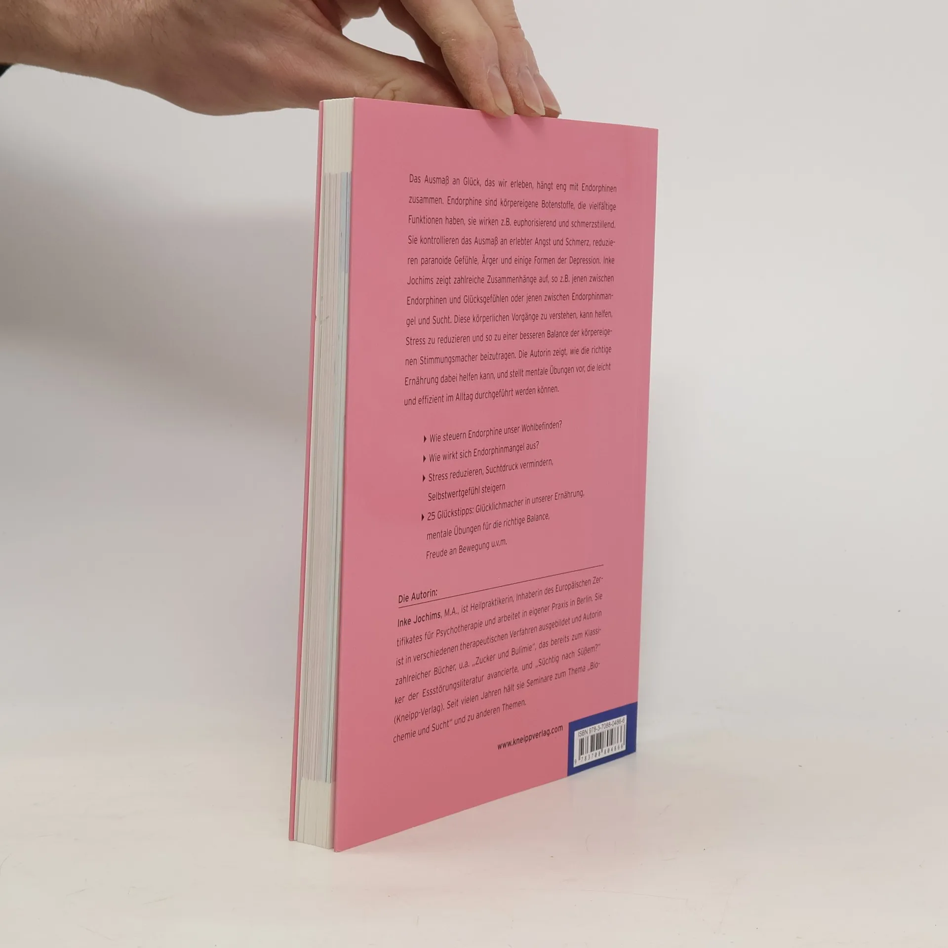 Das Ausmaß an Glück, das wir erleben, hängt eng mit Endorphinen zusammen. Endorphine sind körpereigene Botenstoffe, die vielfältige Funktionen haben, sie wirken z. B. euphorisierend und schmerzstillend. Sie kontrollieren das Ausmaß an erlebter Angst und Schmerz, reduzieren paranoide Gefühle, Ärger und einige Formen der Depression. Inke Jochims zeigt zahlreiche Zusammenhänge auf, so z. B. jenen zwischen Endorphinmangel und Alkohol-, Ess- oder Sportsucht. Diese körperlichen Vorgänge zu verstehen kann helfen, Stress zu reduzieren und so zu einer besseren Balance der körpereigenen Stimmungsmacher beizutragen. Die Autorin zeigt, wie die richtige Ernährung dabei helfen kann, und stellt mentale Übungen vor, die leicht und effizient im Alltag durchgeführt werden können.