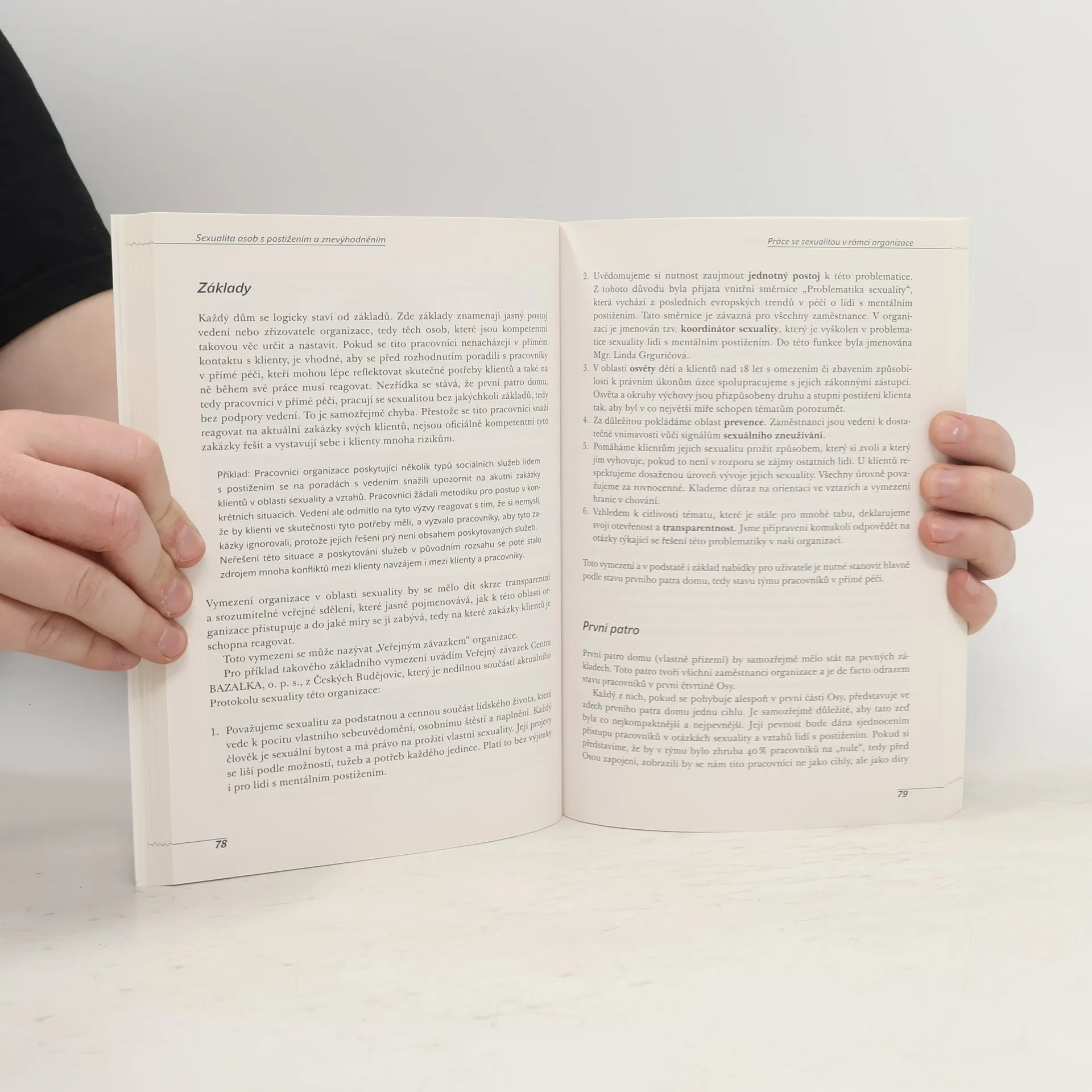 Příručka pro pracovníky v sociálních službách a zdravotnických zařízeních Kniha nabízí informace k problematice sexuality vybraných skupin klientů sociálních a zdravotních služeb. Popisuje základní principy lidské sexuality, specifika vývoje a především omezenou možnost sexuálních kontaktů u lidí s mentálním postižením či duševním onemocněním. Samotné postižení či onemocnění dává vzniknout řadě problémových situací, jako je nepřiměřené sexuální chování, ohrožení sexuálním násilím či snížená schopnost ovládat své potřeby. Dlouhodobý pobyt v zařízeních komplikuje možnost přirozeného sexuálního chování. Pojednána je i problematika jinak znevýhodněných osob – zejména seniorů v ústavní péči. Autoři nabízejí pohled na specifika problému a v rámci kazuistik ukazují vhodné postupy při řešení často se opakujících situací. Zahrnuty jsou i ukázky postupu sexuální výchovy. Kniha je určena pro pracovníky v sociálních službách a zdravotnických zařízeních, rodiče a příbuzné lidí s postižením a znevýhodněním, studenty.