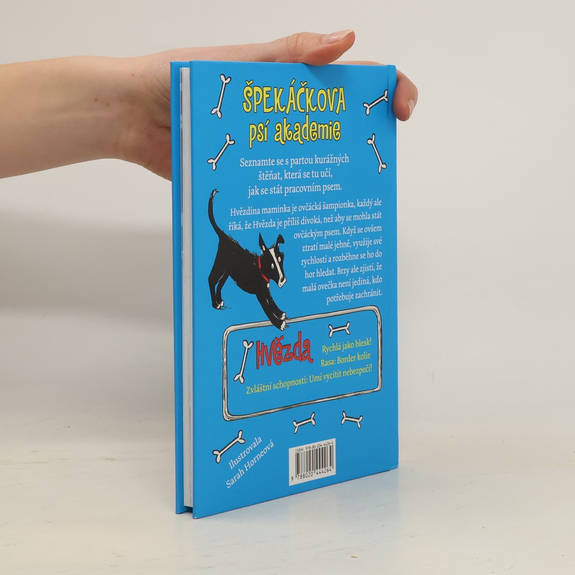 Jako další se vám z party kurážných štěňat, která se na Špekáčkově psí akademii učí, jak se stát pracovním psem a být užitečný, představí border kolie Hvězda. Její maminka je ovčácká šampionka, každý ale říká, že Hvězda je příliš divoká, než aby se mohla stát ovčáckým psem. Když se ovšem ztratí malé jehně, využije své rychlosti a rozběhne se ho do hor hledat. Brzy ale zjistí, že malá ovečka není jediná, kdo potřebuje zachránit… Bonus na závěr: Na konci knihy se čtenáři seznámí s Fern, opravdovou psí záchranářkou, a dozvědí se, co všechno tohle psí povolání obnáší!