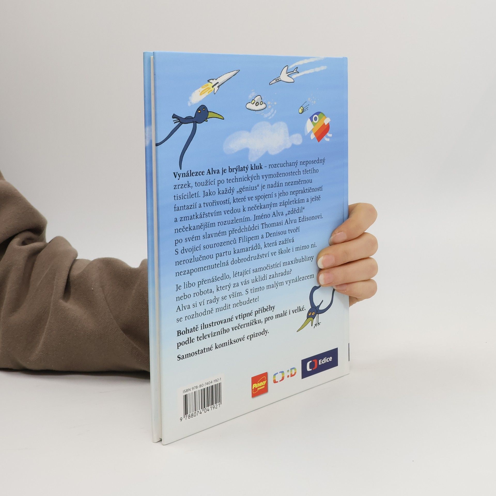 Je libo raketobrusle, přenášedlo, létající samočistící maxibubliny nebo robota, který za vás uklidí zahradu? Alva si ví rady se vším. S tímto vynálezcem se rozhodně nudit nebudete! Vynálezce Alva je brýlatý kluk – rozcuchaný neposedný zrzek, toužící po technických vymoženostech třetího tisíciletí. Jméno Alva „zdědil“ po svém slavném předchůdci T. A. Edisonovi. Jako každý génius je nadán nezměrnou fantazií a tvořivostí, které ve spojení s jeho nepraktičností a zmatkářstvím vedou k nečekaným zápletkám a ještě nečekanějším rozuzlením. S dvojicí sourozenců Filipem a Denisou tvoří nerozlučnou partu kamarádů, která zažívá neuvěřitelná dobrodružství ve škole i mimo ni. Náš příběh začíná první školní den… Bohatě ilustrované vtipné příběhy podle televizního večerníčku, pro malé i velké. 2.,upravené vydání.