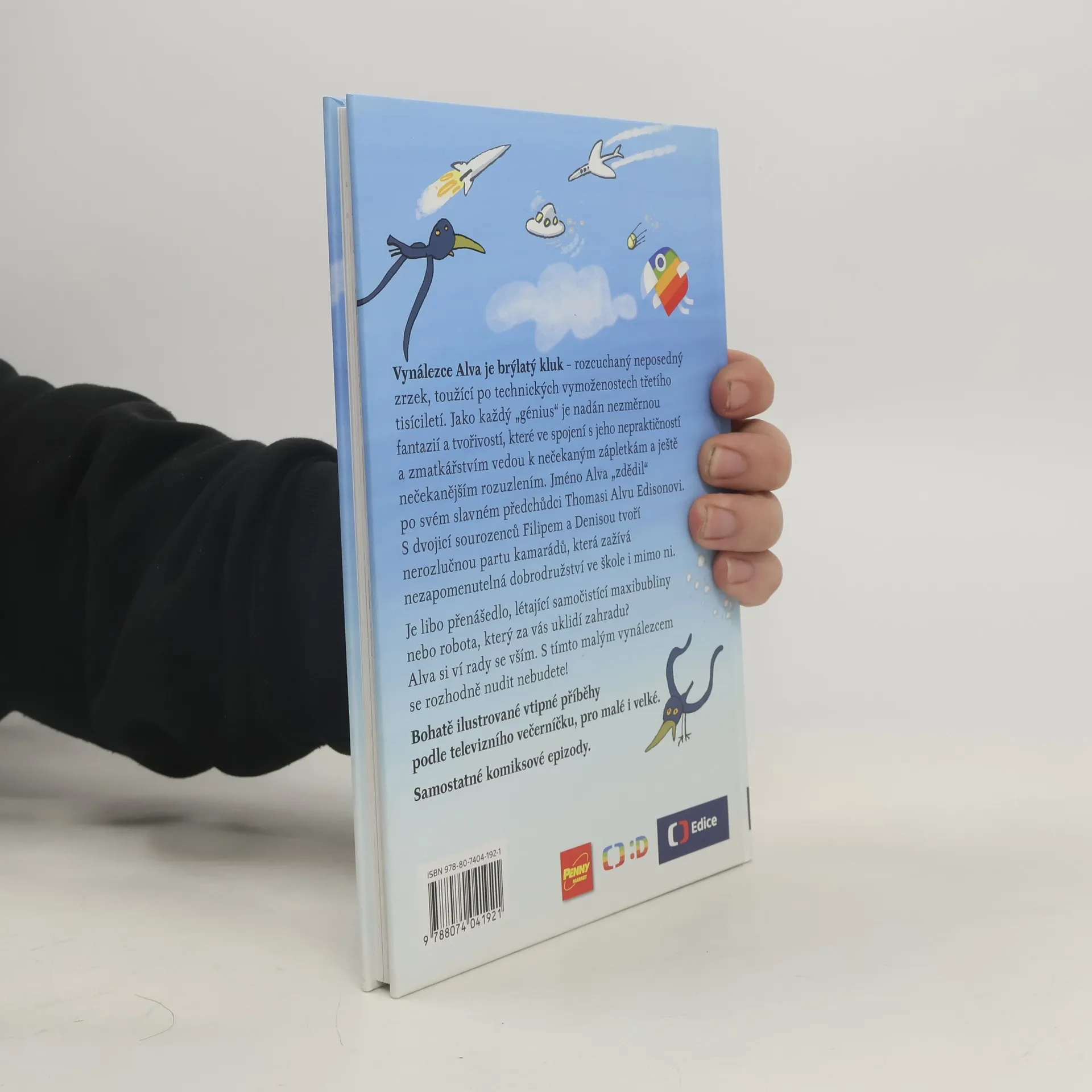 Je libo raketobrusle, přenášedlo, létající samočistící maxibubliny nebo robota, který za vás uklidí zahradu? Alva si ví rady se vším. S tímto vynálezcem se rozhodně nudit nebudete! Vynálezce Alva je brýlatý kluk – rozcuchaný neposedný zrzek, toužící po technických vymoženostech třetího tisíciletí. Jméno Alva „zdědil“ po svém slavném předchůdci T. A. Edisonovi. Jako každý génius je nadán nezměrnou fantazií a tvořivostí, které ve spojení s jeho nepraktičností a zmatkářstvím vedou k nečekaným zápletkám a ještě nečekanějším rozuzlením. S dvojicí sourozenců Filipem a Denisou tvoří nerozlučnou partu kamarádů, která zažívá neuvěřitelná dobrodružství ve škole i mimo ni. Náš příběh začíná první školní den… Bohatě ilustrované vtipné příběhy podle televizního večerníčku, pro malé i velké. 2.,upravené vydání.