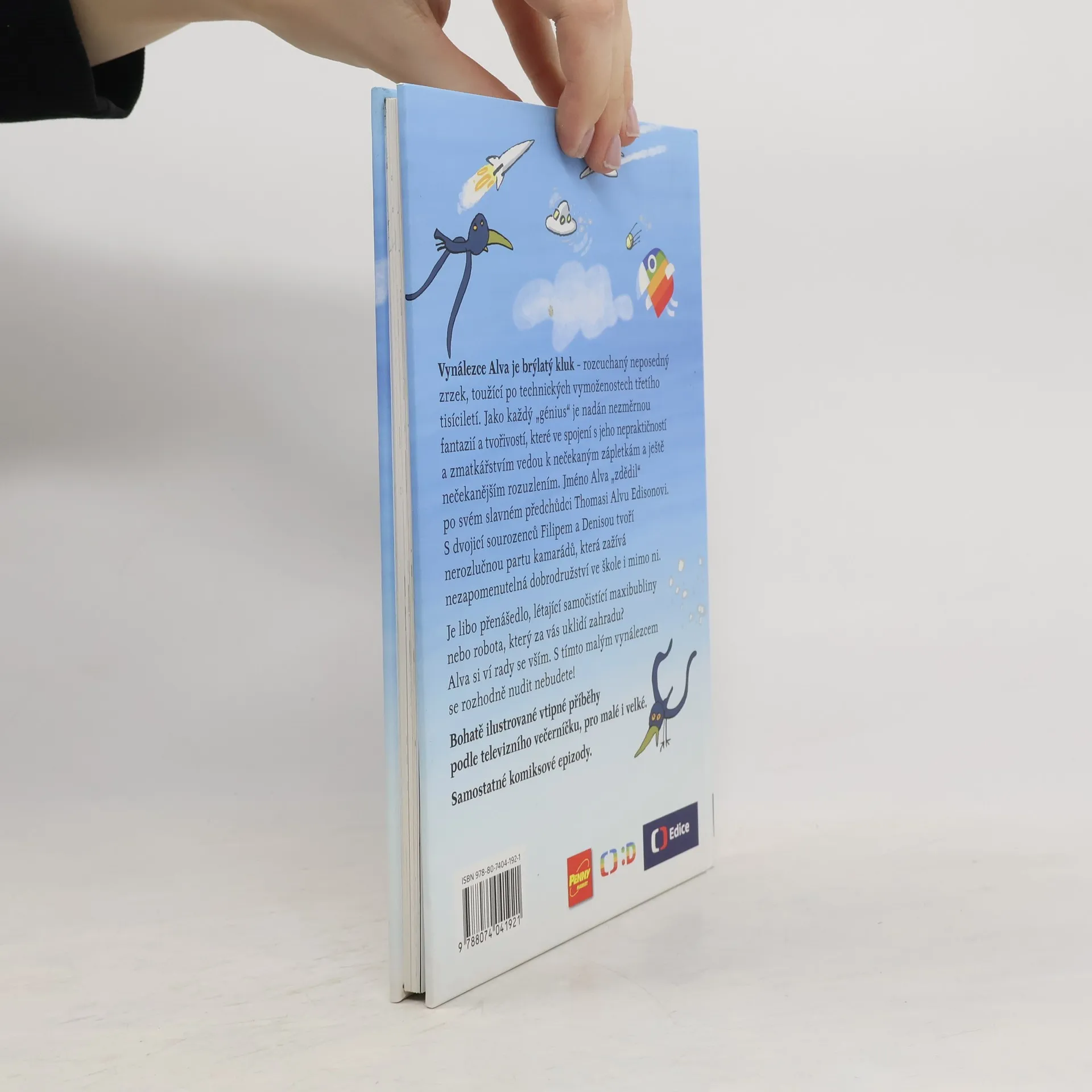 Je libo raketobrusle, přenášedlo, létající samočistící maxibubliny nebo robota, který za vás uklidí zahradu? Alva si ví rady se vším. S tímto vynálezcem se rozhodně nudit nebudete! Vynálezce Alva je brýlatý kluk – rozcuchaný neposedný zrzek, toužící po technických vymoženostech třetího tisíciletí. Jméno Alva „zdědil“ po svém slavném předchůdci T. A. Edisonovi. Jako každý génius je nadán nezměrnou fantazií a tvořivostí, které ve spojení s jeho nepraktičností a zmatkářstvím vedou k nečekaným zápletkám a ještě nečekanějším rozuzlením. S dvojicí sourozenců Filipem a Denisou tvoří nerozlučnou partu kamarádů, která zažívá neuvěřitelná dobrodružství ve škole i mimo ni. Náš příběh začíná první školní den… Bohatě ilustrované vtipné příběhy podle televizního večerníčku, pro malé i velké. 2.,upravené vydání.