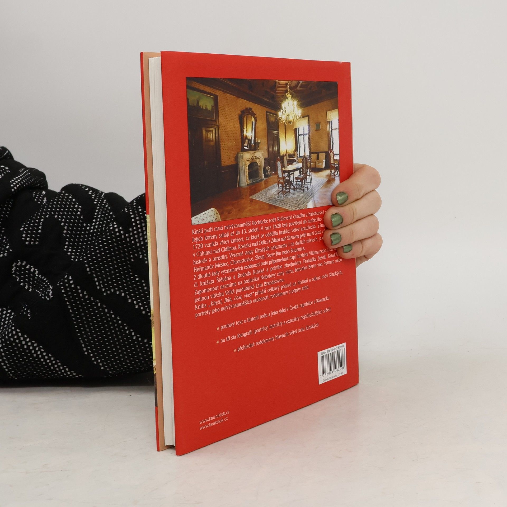 Bůh, čest, vlast. Kinští patří mezi nejvýznamnější šlechtické rody Království českého a habsburské monarchie. Jejich kořeny sahají až do 13. století. V roce 1628 byli povýšeni do hraběcího stavu, v roce 1720 vznikla větev knížecí, ze které se oddělila hraběcí větev kostelecká. Zámky Kinských v Chlumci nad Cidlinou, Kostelci nad Orlicí a Žďáru nad Sázavou patří mezi časté cíle milovníků historie a turistiky. Výrazné stopy Kinských nalezneme i na dalších místech, jako jsou Praha, Heřmanův Městec, Chroustovice, Sloup, Nový Bor nebo Budenice. Z dlouhé řady významných osobností rodu připomeňme např. hraběte Viléma nebo Oktaviána, či knížata Štěpána a Rudolfa Kinské a polního zbrojmistra Františka Josefa Kinského. Zapomenout nesmíme na nositelku Nobelovy ceny míru baronku Bertu von Suttner nebo jedinou vítězku Velké pardubické Latu Brandisovou. Kniha „Kinští, Bůh, čest, vlast“ přináší celkový pohled na historii a odkaz rodu Kinských, informace o jeho nejvýznamnějších osobnostech, přehledné rodokmeny hlavních rodových větví a popisy erbů. Na tři sta fotografií zachycuje portréty členů rodu a jeho nejvýznamnější sídla.
