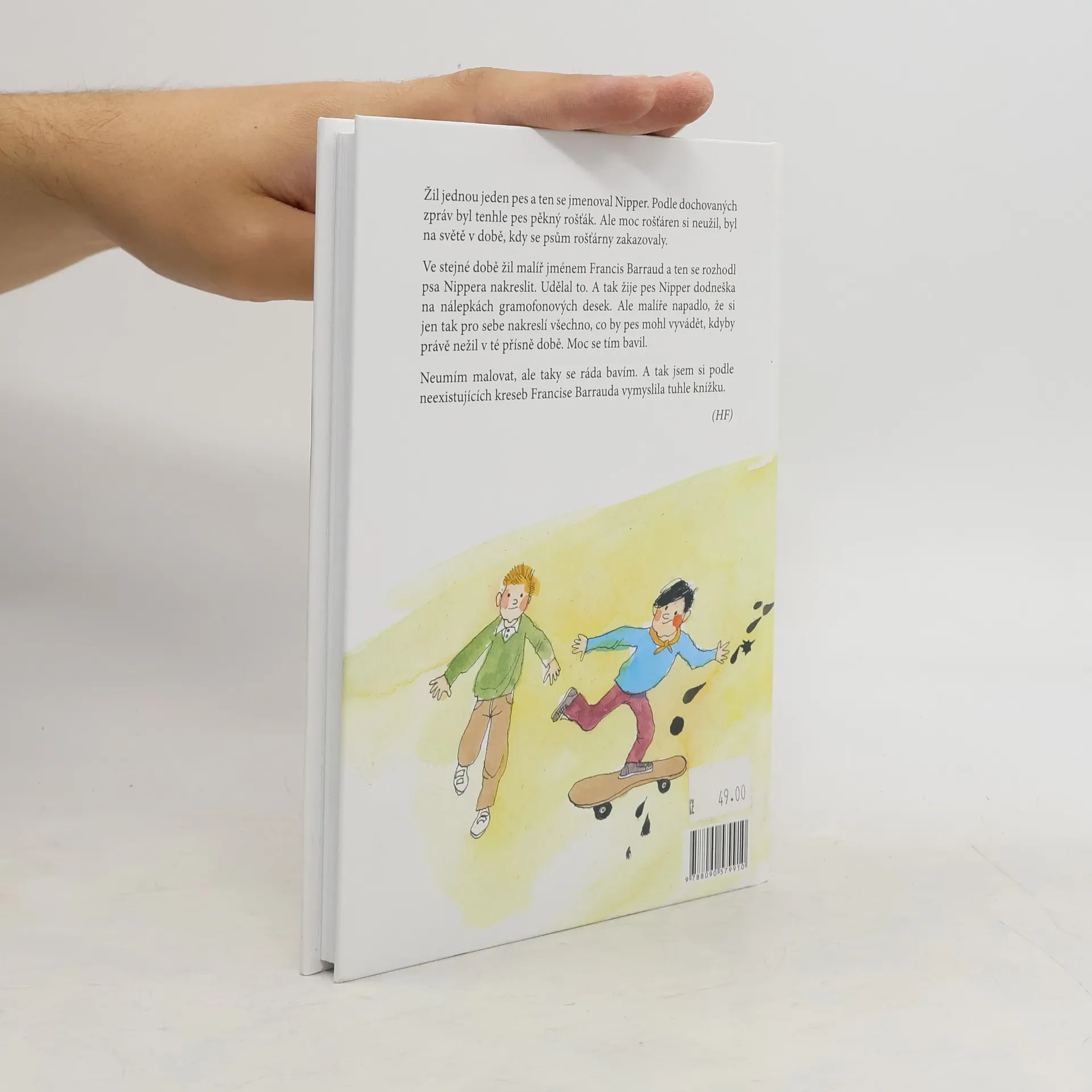 Žil jednou jeden pes a ten se jmenoval Nipper. Podle dochovaných zpráv byl tenhle pes pěkný rošťák. Ale moc rošťáren si neužil, byl na světě v době, kdy se psům rošťárny zakazovaly. Ve stejné době žil malíř jménem Francis Barraud a ten se rozhodl psa Nippera nakreslit. Udělal to. A tak žije pes Nipper dodneška na nálepkách gramofonových desek. Ale malíře napadlo, že si jen tak pro sebe nakreslí všechno, co by pes mohl vyvádět, kdyby právě nežil v té přísně době. Moc se tím bavil.