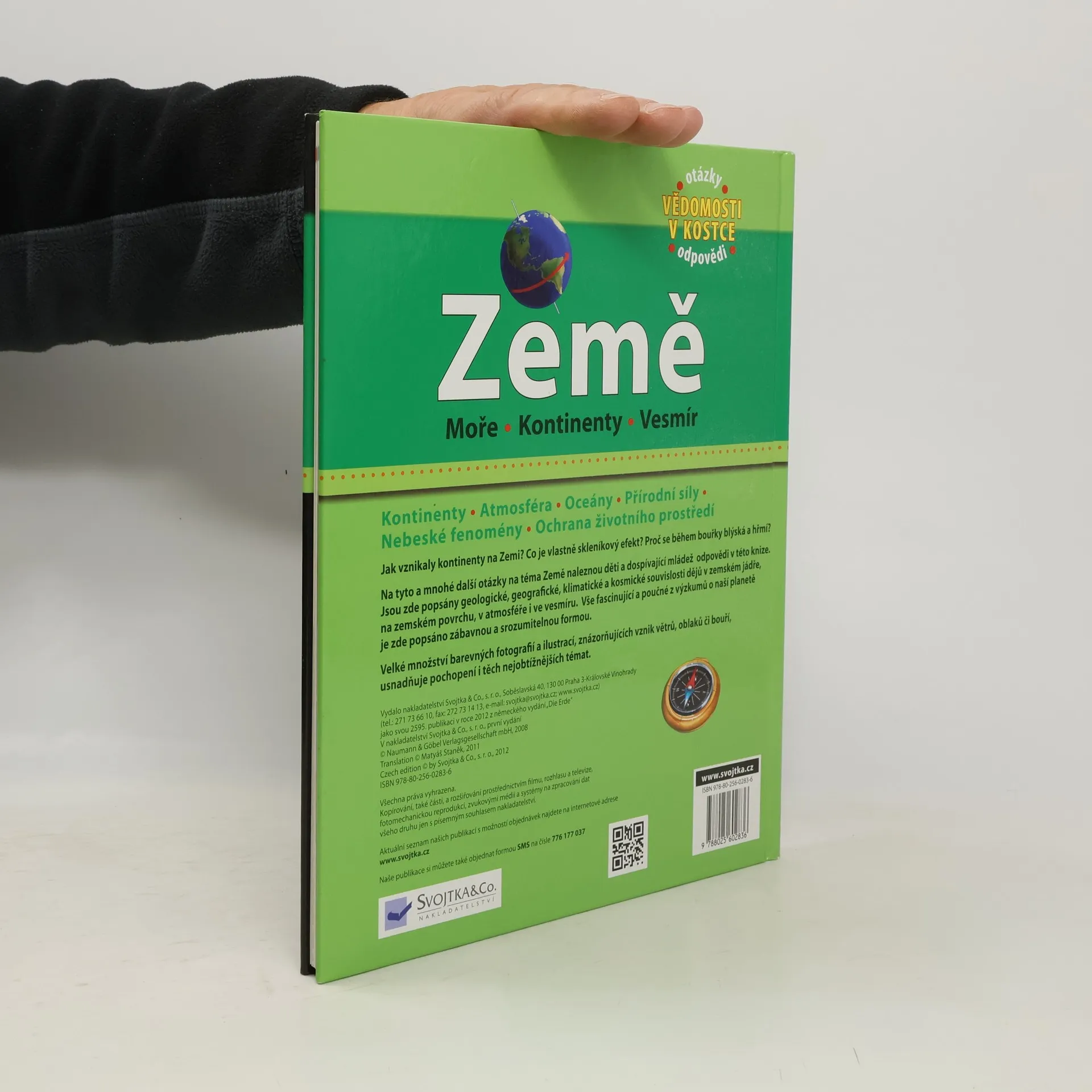 Jak vznikly na Zemi kontinenty? Co je skleníkový efekt? Proč se během bouřky blýská a hřmí? Na tyto a mnohé další otázky na téma Země naleznou mladí čtenáři odpovědi v této knize. Jasně jsou zde popsány geologické, geografické, klimatické a kosmické souvislosti dějů v zemském jádře, na zemském povrchu, v atmosféře i ve vesmíru. Fascinující vědecké poznatky z výzkumů naší planety jsou zde podány v zábavné a srozumitelné formě. Text je doplněn velkým množstvím fotografií a barevných ilustrací, znázorňujících například vznik větrů, oblaků či bouří a usnadňujících pochopení i obtížnějších témat.