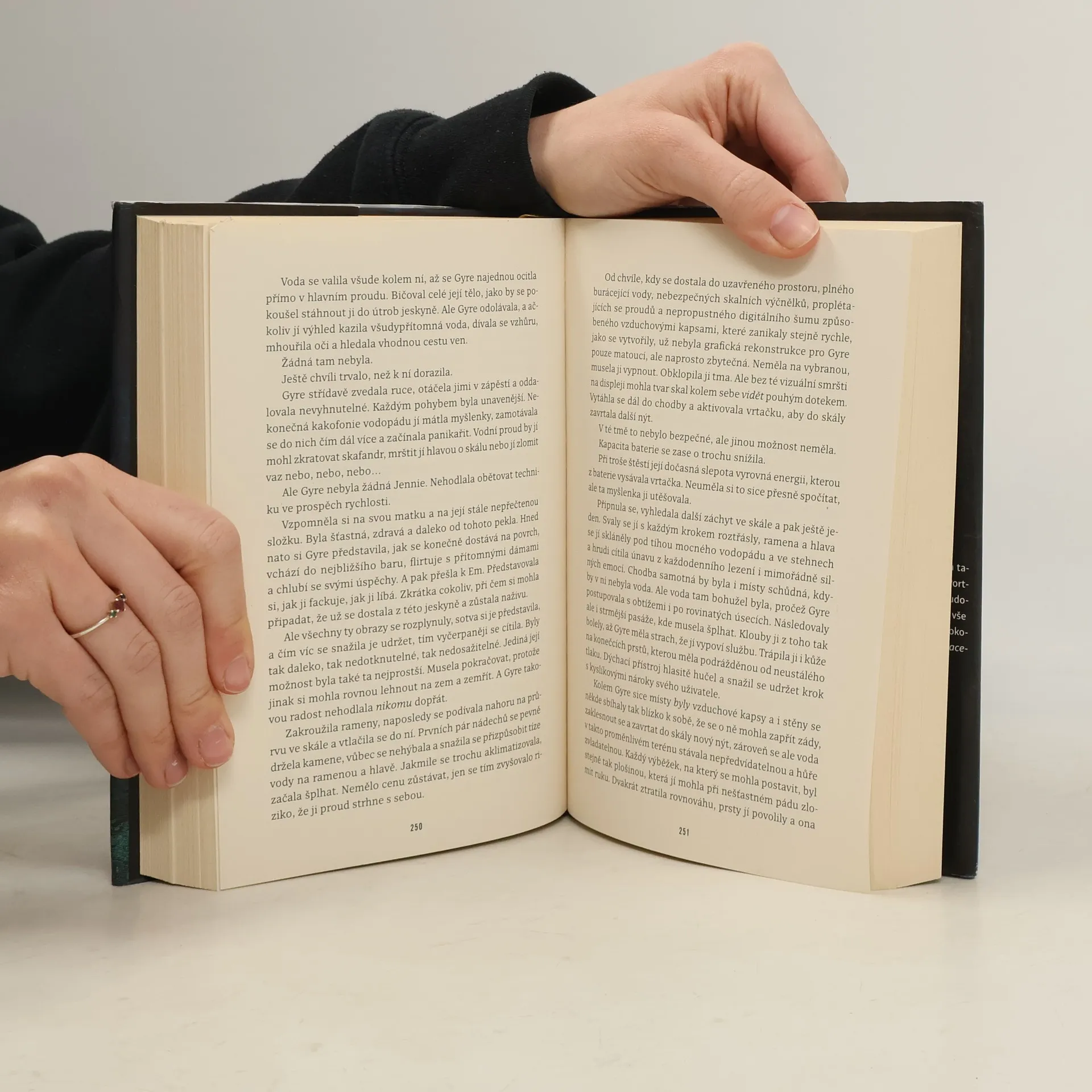 Vzrušující debut Caitlin Starling s intenzitou a napětím Marťana a Gravitace i plíživou atmosférou Anihilace. Hlavní hrdinkou románu, jehož děj se odehrává na kolonizované planetě Cassandra-V, je mladá speleoložka Gyre Priceová, která se pouští do děsivé psychologické a emocionální hry o holé přežití. Když se Gyre dostala na tuto expedici, myslela si, že bude mapovat nerostná ložiska a jejím největším problémem budou zřícené podzemní jeskyně. Očekávala, že dostane k ruce zkušený tým, který na ni bude z povrchové základny dávat pozor. Napovídala tomu ostatně i tučná odměna, díky níž Gyre věřila, že bude moci z téhle bohem zapomenuté planety vypadnout a konečně najít svoji matku, která před lety zmizela neznámo kam. Jenže místo toho dostala k ruce tajnůstkářskou a odměřenou Em, která nevidí nic špatného na tom, když do své svěřenkyně ve jménu „hladkého průběhu expedice“ násilím napumpuje drogy. Co víc, ztracená a dezorientovaná Gyre si začne všímat drobných nesrovnalostí v podobě chybějících zásob i nečekaných změn v trase. A k tomu ten zvláštní pocit, že ji v temnotě jeskyní někdo sleduje...