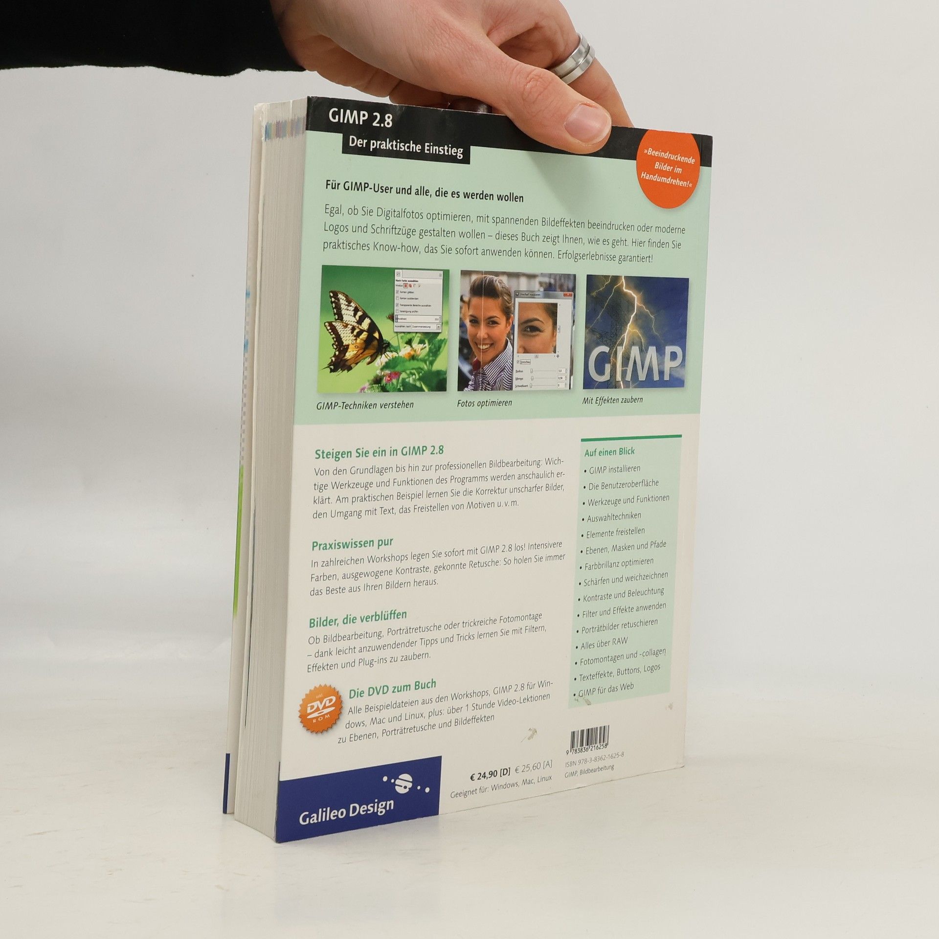 Dieses Buch ist Ihr direkter Einstieg in GIMP 2.8! Schritt für Schritt lernen Sie die Welt von GIMP kennen und erfahren, wie vielfältig Sie die zahlreichen Werkzeuge und Funktionen einsetzen können: Sie optimieren Ihre Digitalfotos und verbessern Farben, Schärfe und Belichtung. Sie erstellen Foto-Montagen und setzen Texte und Filter für knallige Effekte ein. Selbst die Gestaltung von Buttons für das Internet ist mit GIMP bald kein Problem mehr. Zahlreiche Workshops zeigen Ihnen ganz genau, wie es geht. Das benötigte Beispielmaterial finden Sie natürlich auf der Buch-DVD. Aus dem Inhalt: Arbeitsoberfläche Werkzeuge und Paletten Auswahlen, Ebenen, Masken Bildgröße verändern Farben korrigieren Licht und Schatten verbessern Unschärfen entfernen Retusche und Montage Panoramen erstellen Mit UFRAW entwickeln Text-Effekte, Pfade Bilder für das Web Buttons erstellen Galileo Press heißt jetzt Rheinwerk Verlag.