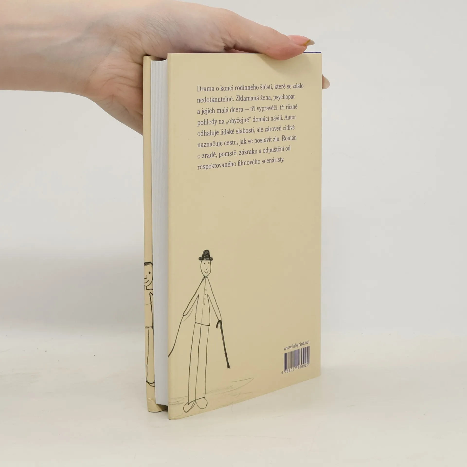 Drama o konci rodinného štěstí, které se zdálo nedotknutelné. Zklamaná žena, psychopat a jejich malá dcera — tři vypravěči, tři různé pohledy na „obyčejné“ domácí násilí. Autor odha-luje lidské slabosti, ale zároveň citlivě naznačuje cestu, jak se postavit zlu. Román o zradě, pomstě, zázraku a odpuštění od respektovaného filmového scenáristy.