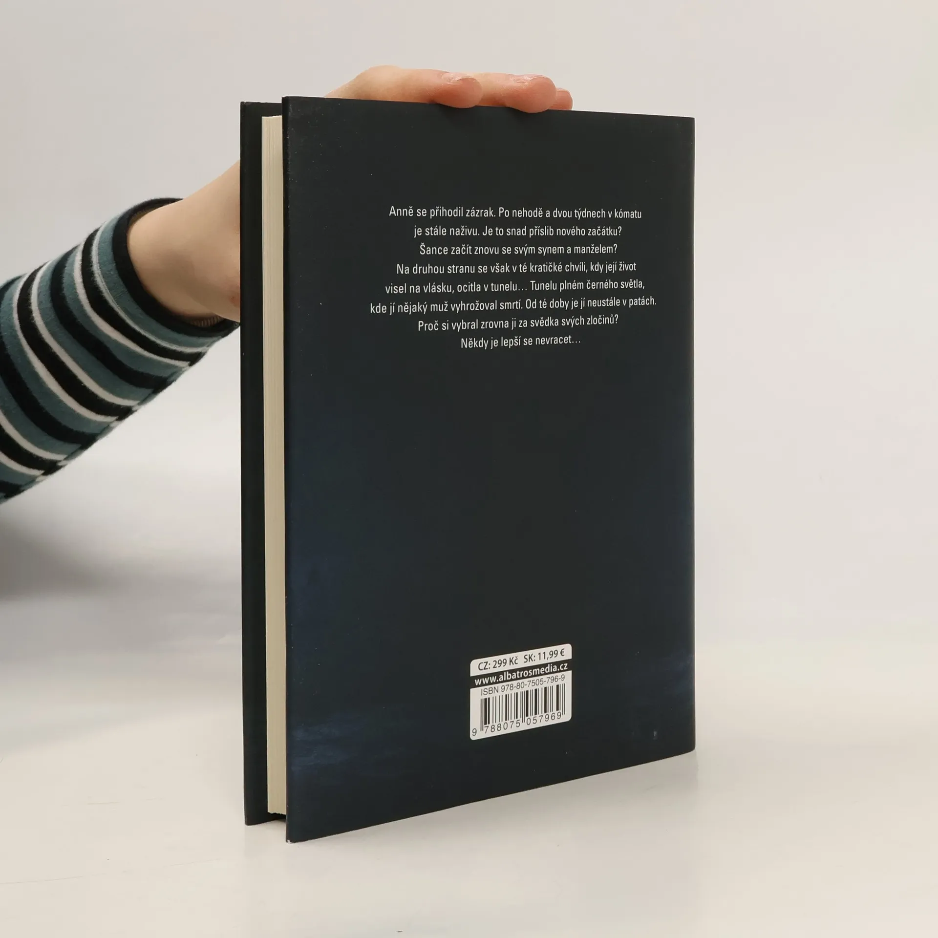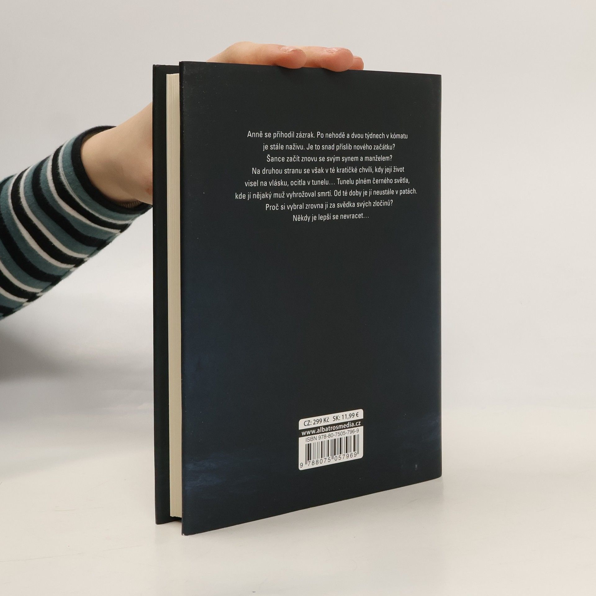 Anně se přihodil zázrak. Po nehodě a dvou týdnech v kómatu je stále naživu. Je to snad příslib nového začátku? Šance začít znovu se svým synem a manželem? Na druhou stranu se však v té kratičké chvíli, kdy její život visel na vlásku, ocitla v tunelu… Tunelu plném černého světla, kde jí nějaký muž vyhrožoval smrtí… Od té doby je jí neustále v patách. Proč si vybral zrovna ji za svědka svých zločinů? Někdy je lepší se nevracet…
