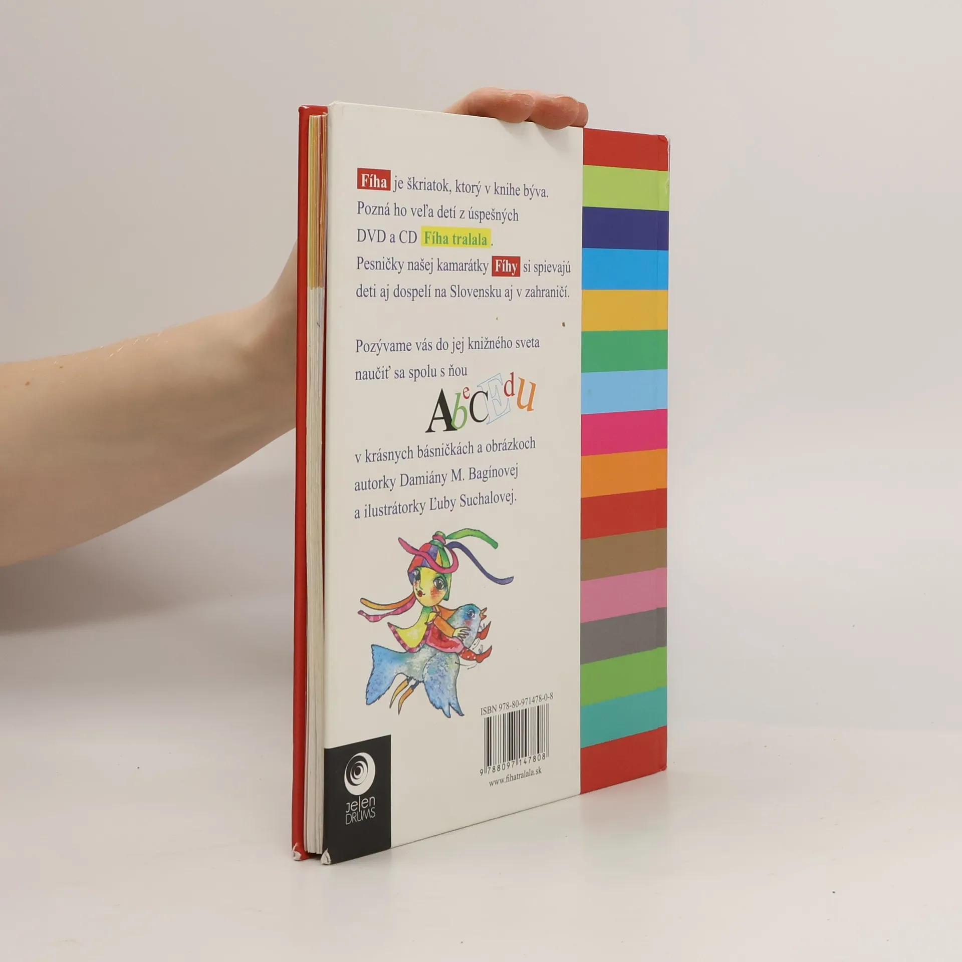 Fíha je škriatok, ktorý v knihe býva. Pesničky našej kamarátky Fíhy si spievajú deti aj dospelí na Slovensku aj v zahraničí. Pozývame vás do jej knižného sveta naučiť sa spolu s ňou Abecedu v krásnych básničkách a obrázkoch autorky Damiány M. Bagínovej a ilustrátorky Ľuby Suchalovej.