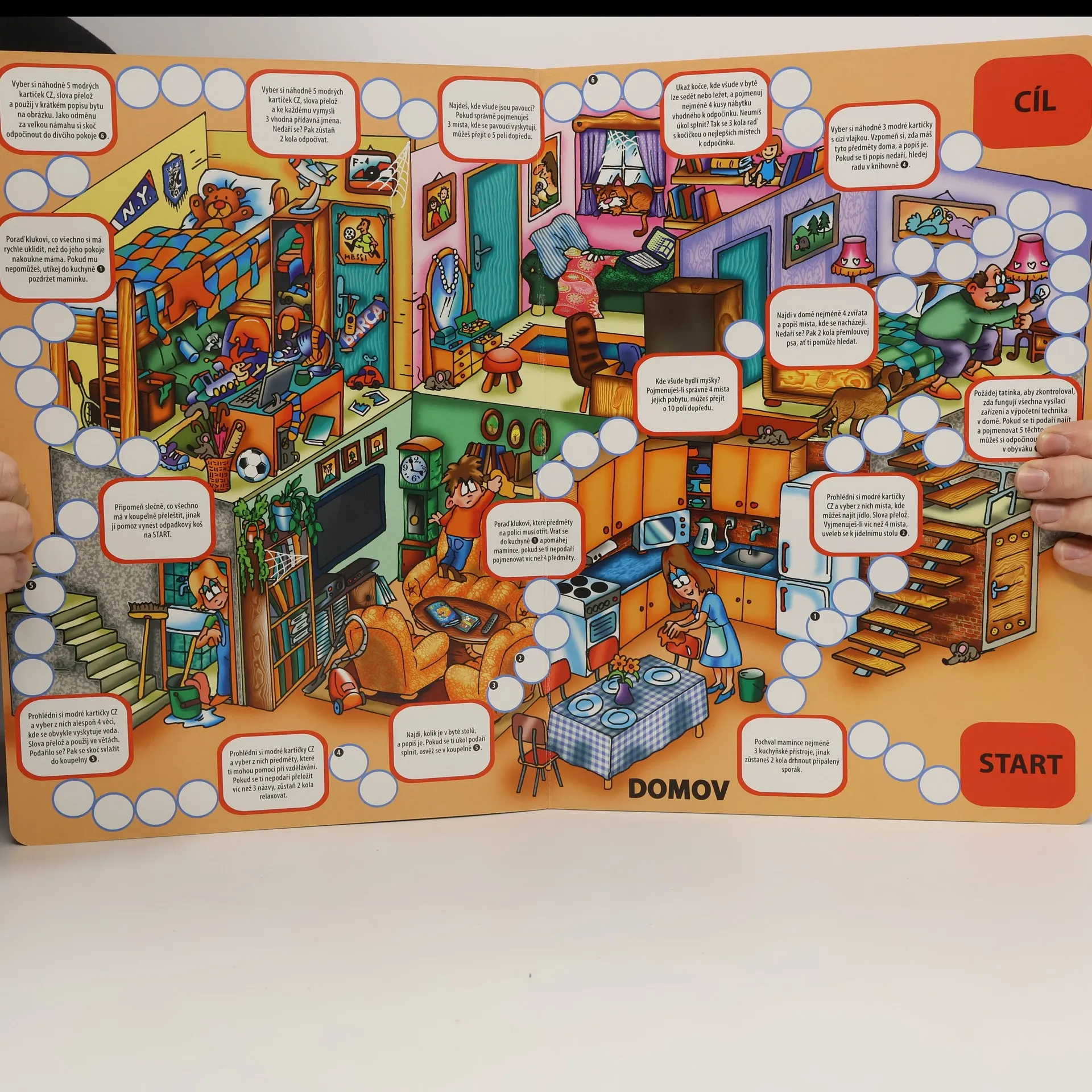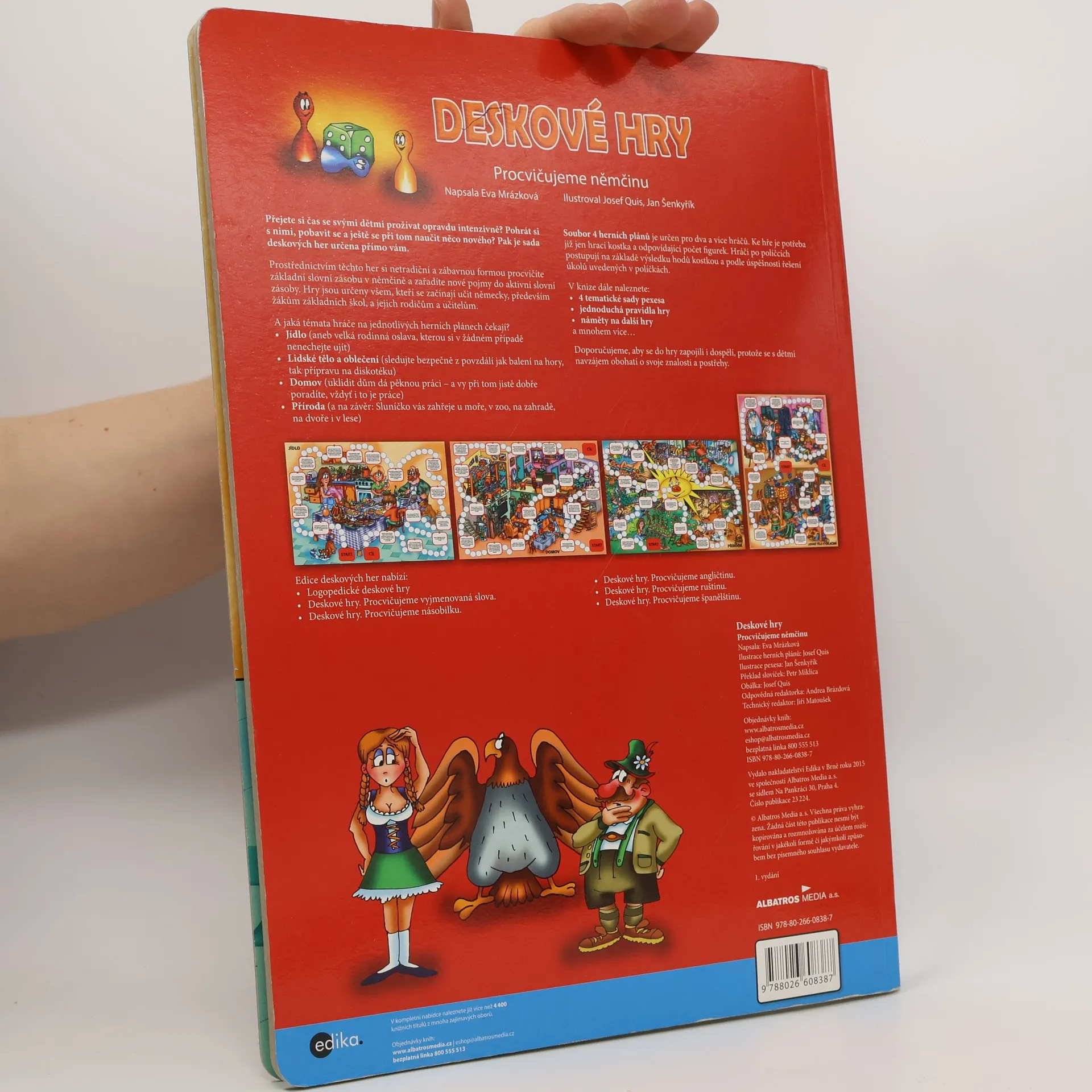 Namísto memorování nekončících sloupců slovíček najděte trochu místa na stole... rozložte herní plán, vezměte kostku a figurky a pak se už jen společně s dětmi dobře pobavte. Netradiční a zábavnou formou si procvičíte základní slovní zásobu v němčině a zařadíte nové pojmy do aktivní slovní zásoby. Prostřednictvím přiložených kartiček se hra neustále proměňuje a nenudí. Tak, kdo hází jako první?