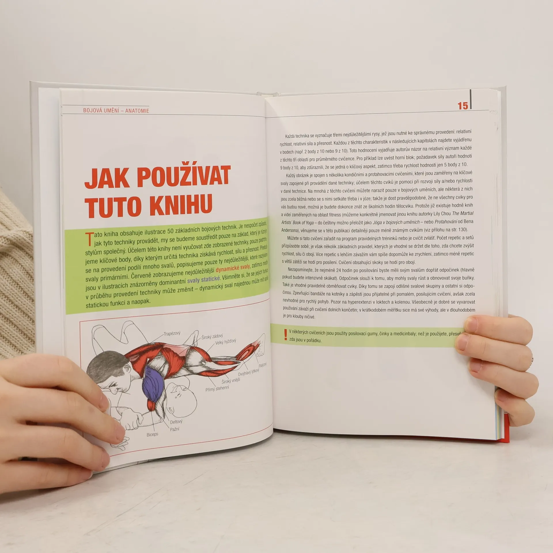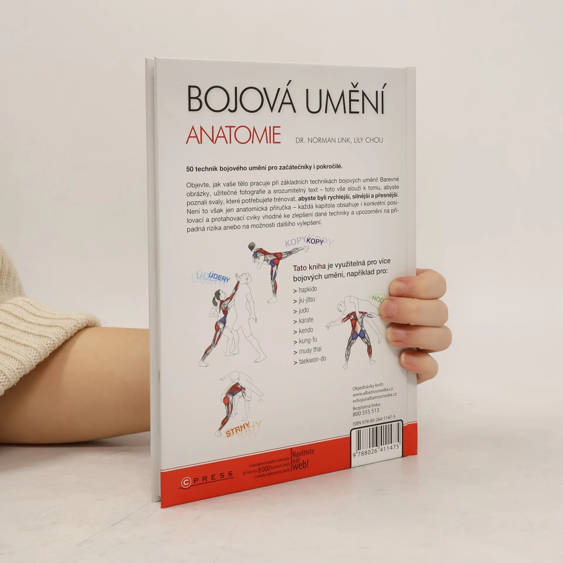 Ilustrovaný průvodce zapojením svalů v základních kopech, úderech a strzích Objevte, jak vaše tělo pracuje při základních technikách bojových umění! Barevné obrázky, užitečné fotografie a srozumitelný text – toto vše slouží k tomu, abyste poznali svaly, které potřebujete trénovat, abyste byli rychlejší, silnější a přesnější. Není to však jen anatomická příručka – každá kapitola obsahuje i konkrétní posilovací a protahovací cviky vhodné ke zlepšení dané techniky a upozornění na případná rizika anebo na možnosti dalšího vylepšení.