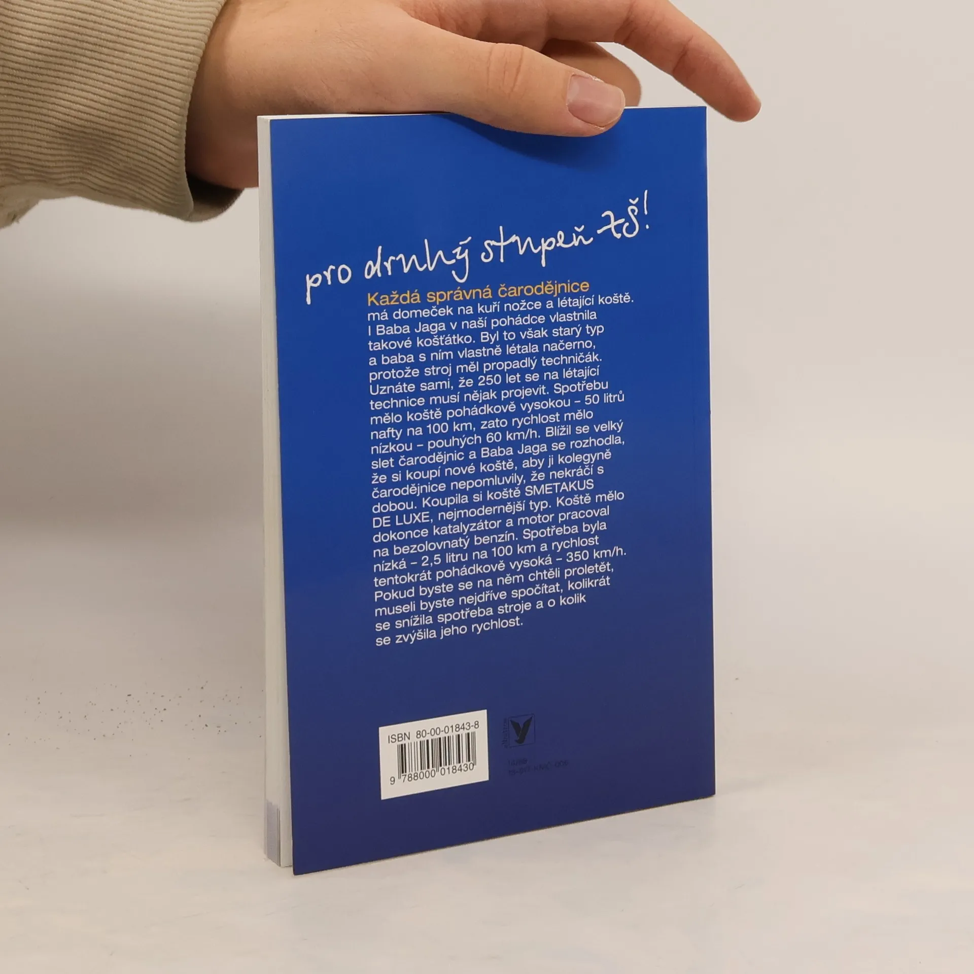 Humorné matematické pohádky pro druhý stupeň zákadní školy. Baba Jaga měla létající koště se spotřebou 50l/100km a rychlostí 60 km/h. Na slet čarodejnic si naše Baba koupila koště nové. Mělo spotřebu 2,5 l/100km s maximální rychlostí 350km/h. Pokud byste se na něm chtěli proletět, museli byste nejprve spočítat kolikrát se snížila spotřeba a kolikrát zvýšila maximální rychlost. Vtipně převyprávěné příběhy známých pohádkových a filmových postav v sobě skrývají matematické slovní úlohy, díky nimž se tento předmět stane pro děti mnohem přitažlivější. Vhodné jakocvičebnice matematiky.