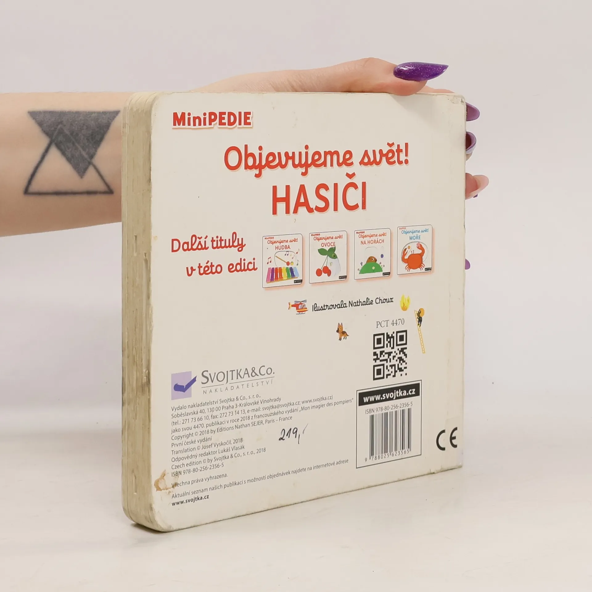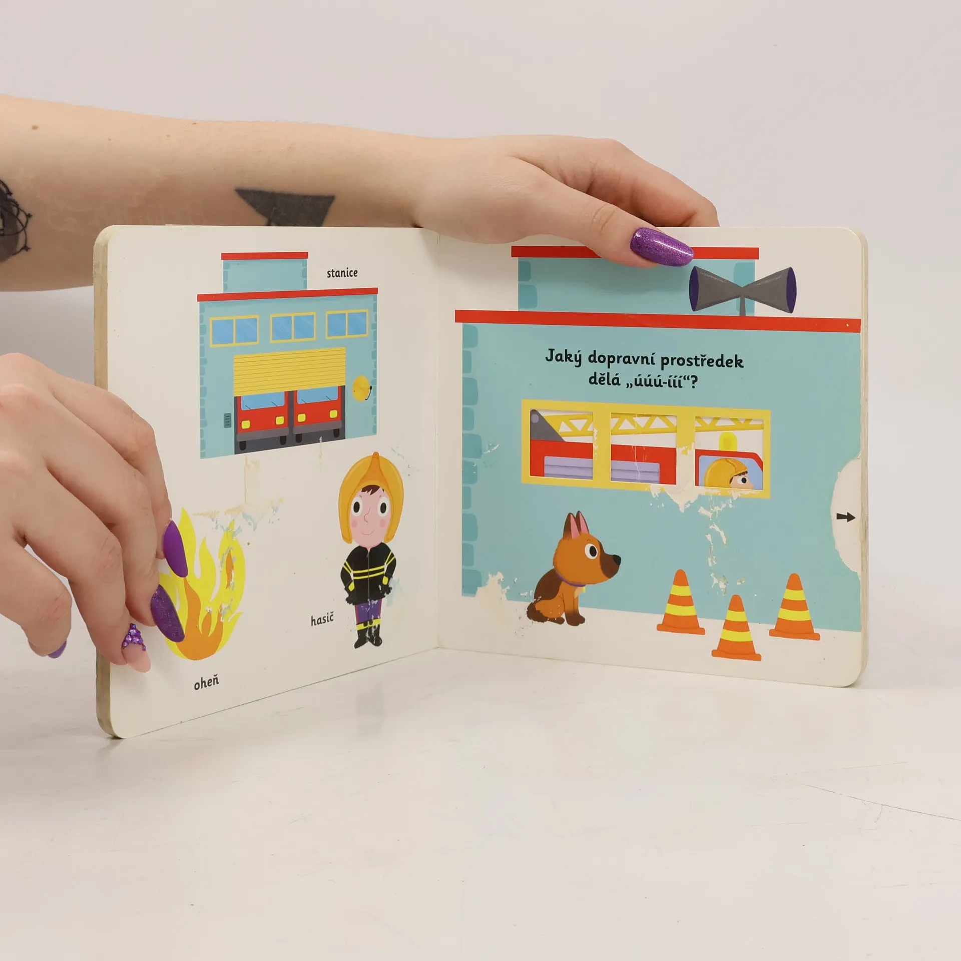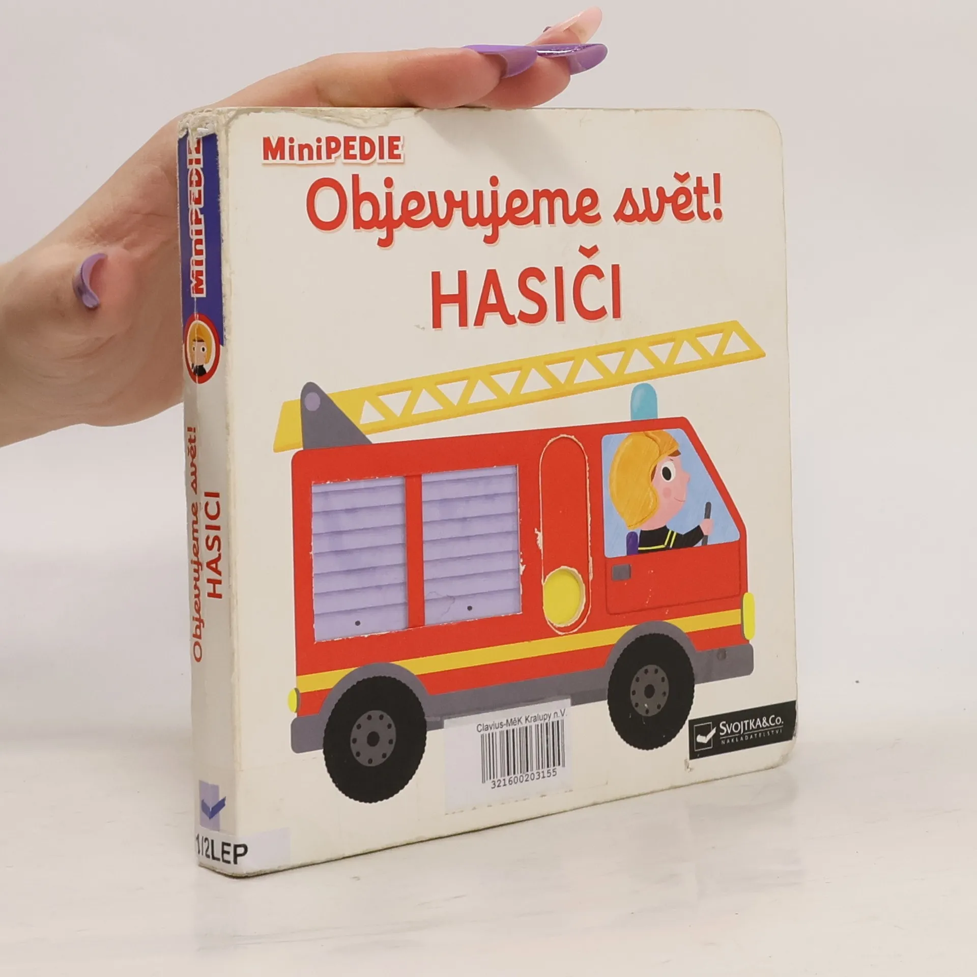 Hasič hasí velké požáry. Jaké nosí oblečení a v jakém autě jezdí? Co všechno potřebuje, aby uhasil oheň? Knížka plná pestrých ilustrací je vhodná pro nejmenší děti, které si díky ní procvičí jemnou mototriku – obsahuje totiž velké množství nejrůznějších pohyblivých částí a okének, které obrázky oživují. Knížka s prvky Montessori.
