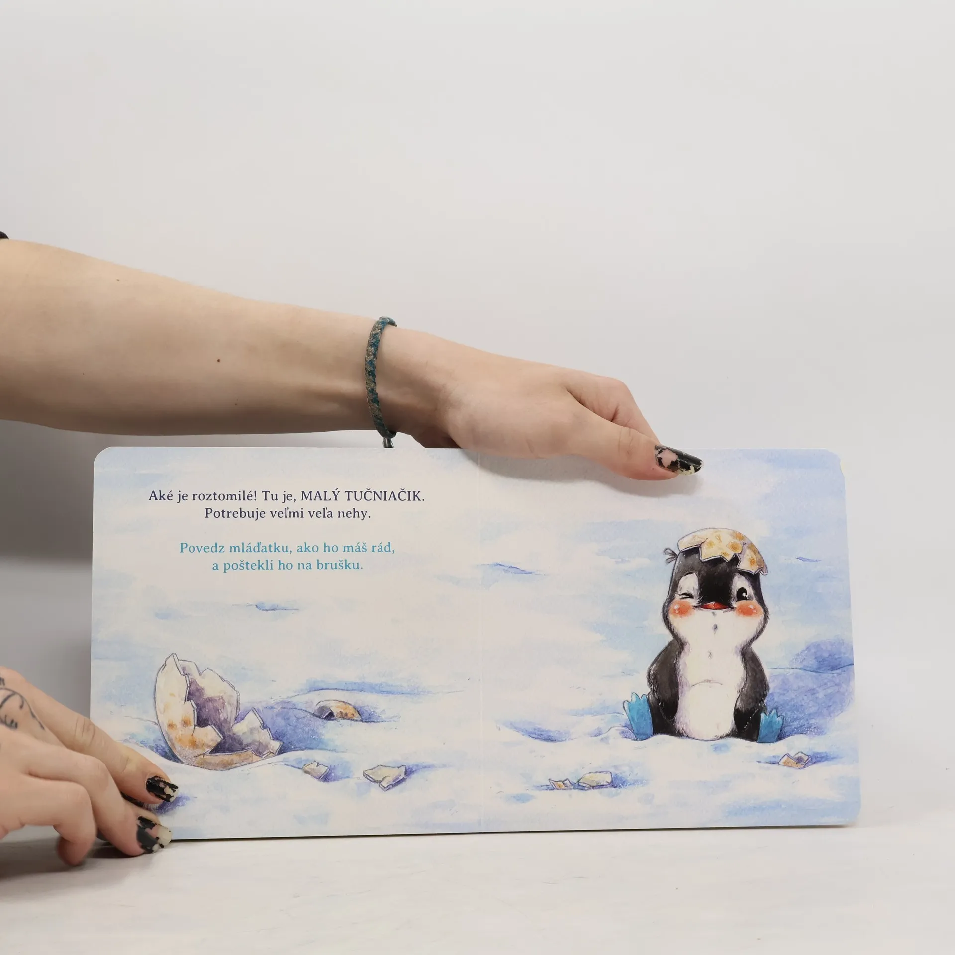Malé vajíčko tučniaka sa odkotúľa preč. Pomôžeš mláďatku von zo škrupinky a nájdeš spolu s ním jeho rodičov? Milý príbeh plný dobrodružstva pre našich najmenších. Fúkajte, klopkajte, hladkajte, nakŕmte a pritúľte si tučniačika. Pre deti od 18 mesiacov.