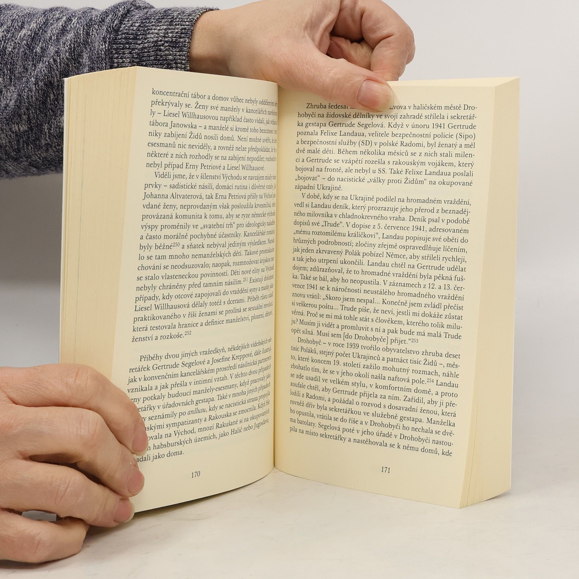 Podtitul: Německé ženy na nacistických vražedných polích. Co vedlo vzdělané, ale nezkušené německé dívky k aktivní účasti na nepředstavitelných zvěrstvech nacismu na východních výspách Třetí říše? Po dvacetiletém terénním i archivním výzkumu přichází americká historička s originálním příspěvkem k historii druhé světové války. Na základě nově objevených dokumentů rozkrývá osudy a činy třinácti učitelek, zdravotních sester a sekretářek, jež zdaleka nebyly jen partnerkami vrahů, svědkyněmi zločinů či pachatelkami zodpovědnými "pouze úředně". Lowerová doprovází své postavy na "romantických výletech" po židovských ghettech i na výjezdech k polím smrti, kde se ani ženská ruka nebrání stisknout spoušť, vypráví příběhy manželek esesmanů, matek jejich dětí, jejichž brutalita si nezadá s brutalitou jejich mužských protějšků.
