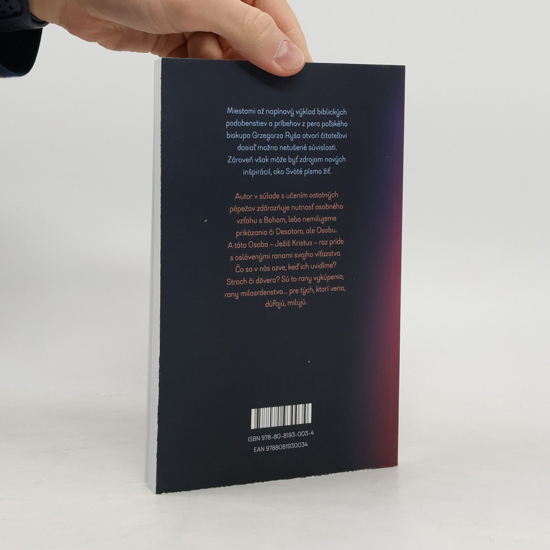 Miestami až napínavý výklad biblických podobenstiev a príbehov z pera poľského biskupa Grzegorza Ryśa pod názvom Škandál milosrdenstva otvorí čitateľovi dosiaľ možno netušené súvislosti. Zároveň však môže byť zdrojom nových inšpirácií, ako Sväté písmo žiť. Autor v súlade s učením ostatných pápežov zdôrazňuje nutnosť osobného vzťahu s Bohom, lebo nemilujeme prikázania či Desatoro, ale Osobu. A táto Osoba – Ježiš Kristus – raz príde s oslávenými ranami svojho víťazstva. Čo sa v nás ozve, keď ich uvidíme? Strach či dôvera? Sú to rany vykúpenia, rany milosrdenstva... pre tých, ktorí veria, dúfajú, milujú.