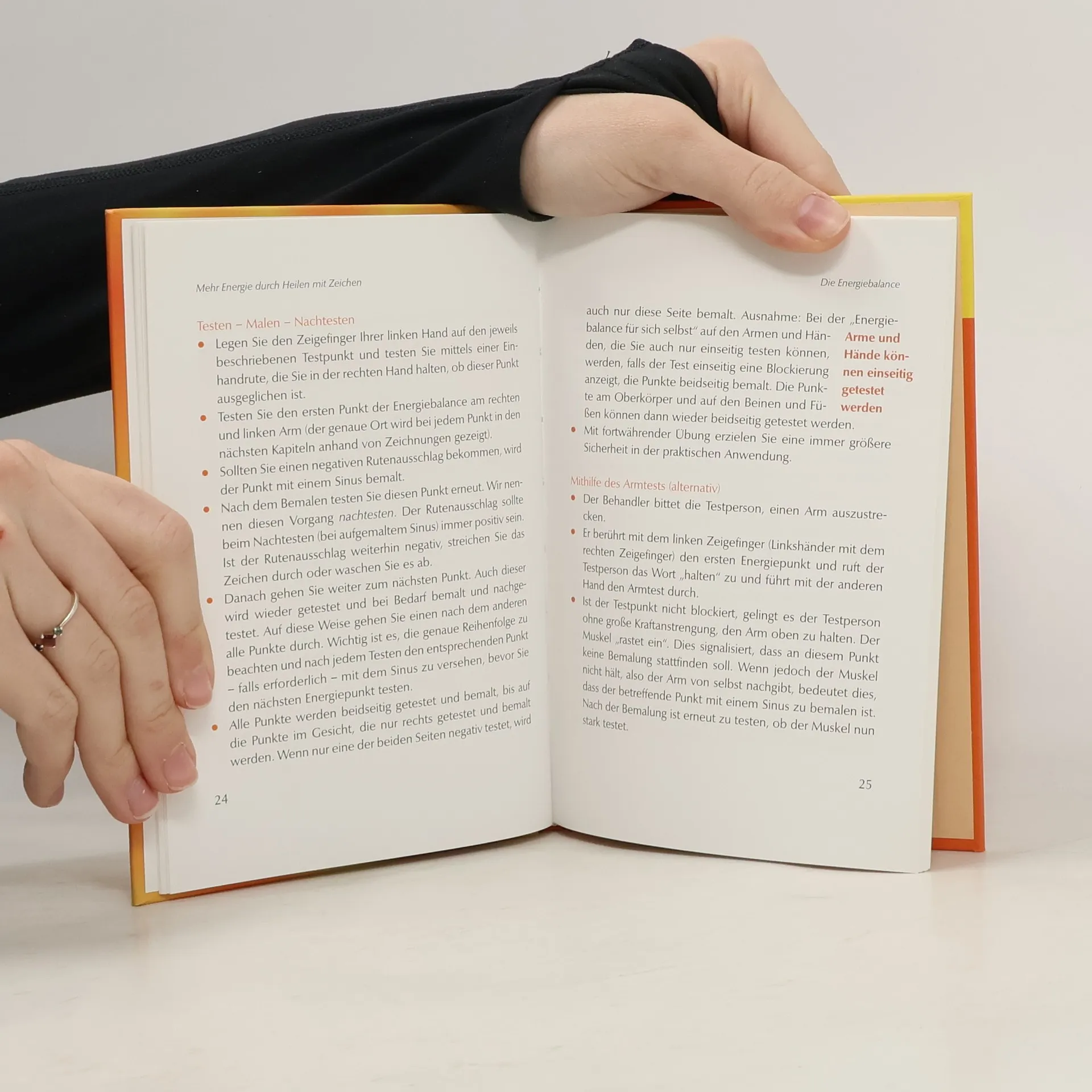 Die neue und einfache Art der erfolgreichen Selbstheilung Die Energiebalance des Körpers kann an vierzehn Punkten getestet und durch das Aufmalen von Zeichen ausgeglichen werden. Jeder Energiepunkt steht für ein Energiesystem und für bestiMMte Themen. Wird die Energie dort nicht mehr gehalten, sondern fließt wieder frei, hat der Mensch mehr Kraft und Heilung kann stattfinden. Das Testen der Punkte wird ausführlich erklärt, die Anwendung der Zeichen mit Illustrationen veranschaulicht. Ein kompakter Ratgeber für mehr Lebenskraft. •Die neue und einfache Art der Selbstheilung. •An vierzehn Punkten des Körpers kann der Energiefluss getestet werden. •Durch das Aufmalen von Zeichen an diesen Energiepunkten wird die Körperenergie harmonisiert. •Jeder Energiepunkt steht für ein Energiesystem und für bestiMMte Themen, die erklärt werden. So können auch psychische Blockaden gelöst werden. •Kann die Energie wieder frei fließen, hat der Mensch mehr Kraft und Heilung kann stattfinden. •Das einfach Testen der Punkte wird ausführlich erklärt, das Aufmalen der Zeichen mit Illustrationen veranschaulicht