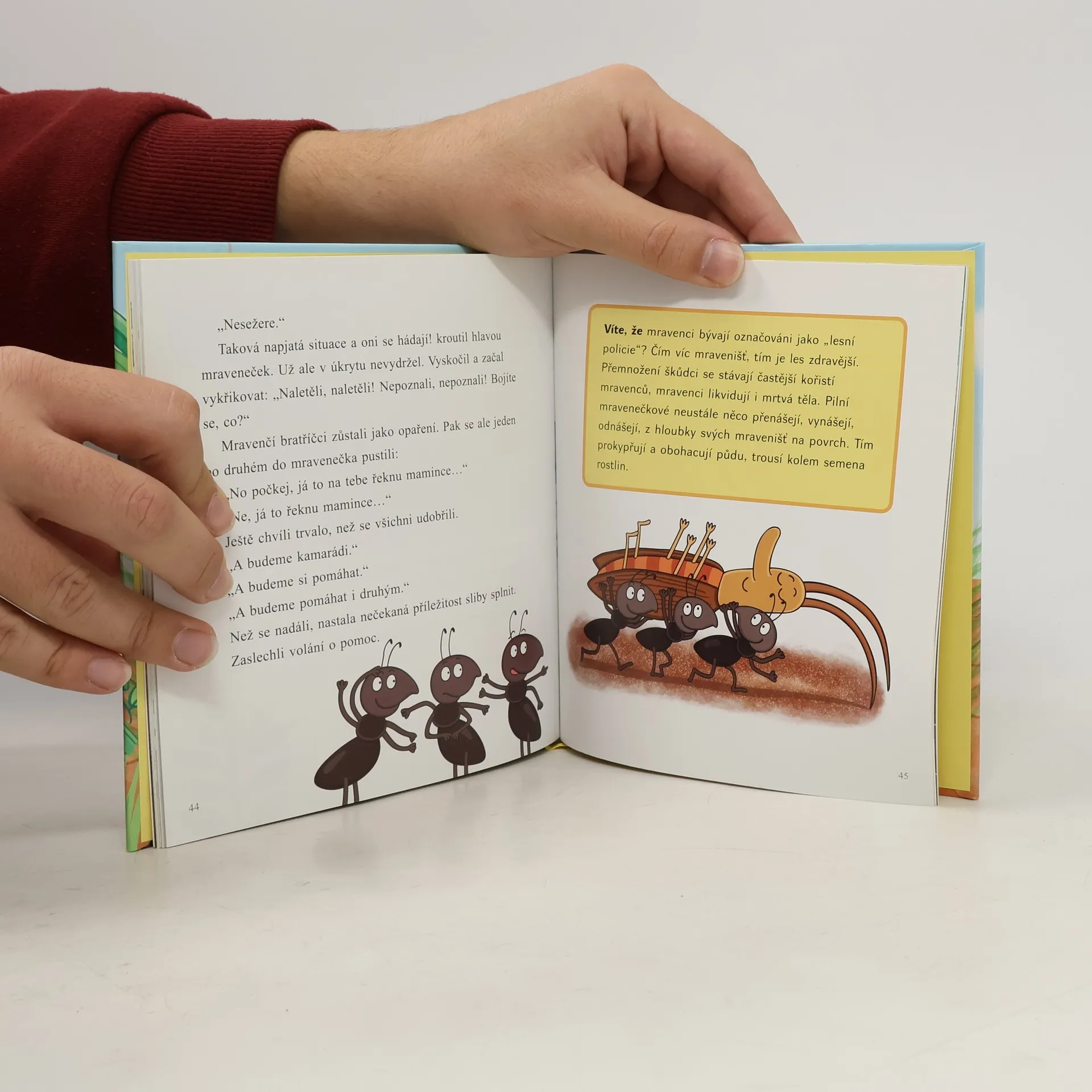 Knížku určenou zejména předškolákům a dětem mladšího školního věku tvoří krátké příběhy malého mravenečka, který chce poznat svět. Několikrát se vydává na cestu, jednou pěšky, jindy stopem, pak s pomocí hmyzího letadélka či plavbou v ořechové skořápce. Za každým příběhem následuje několik zajímavostí o některé postavě nebo předmětu z příběhu a dále zábavný úkol či hádanka.