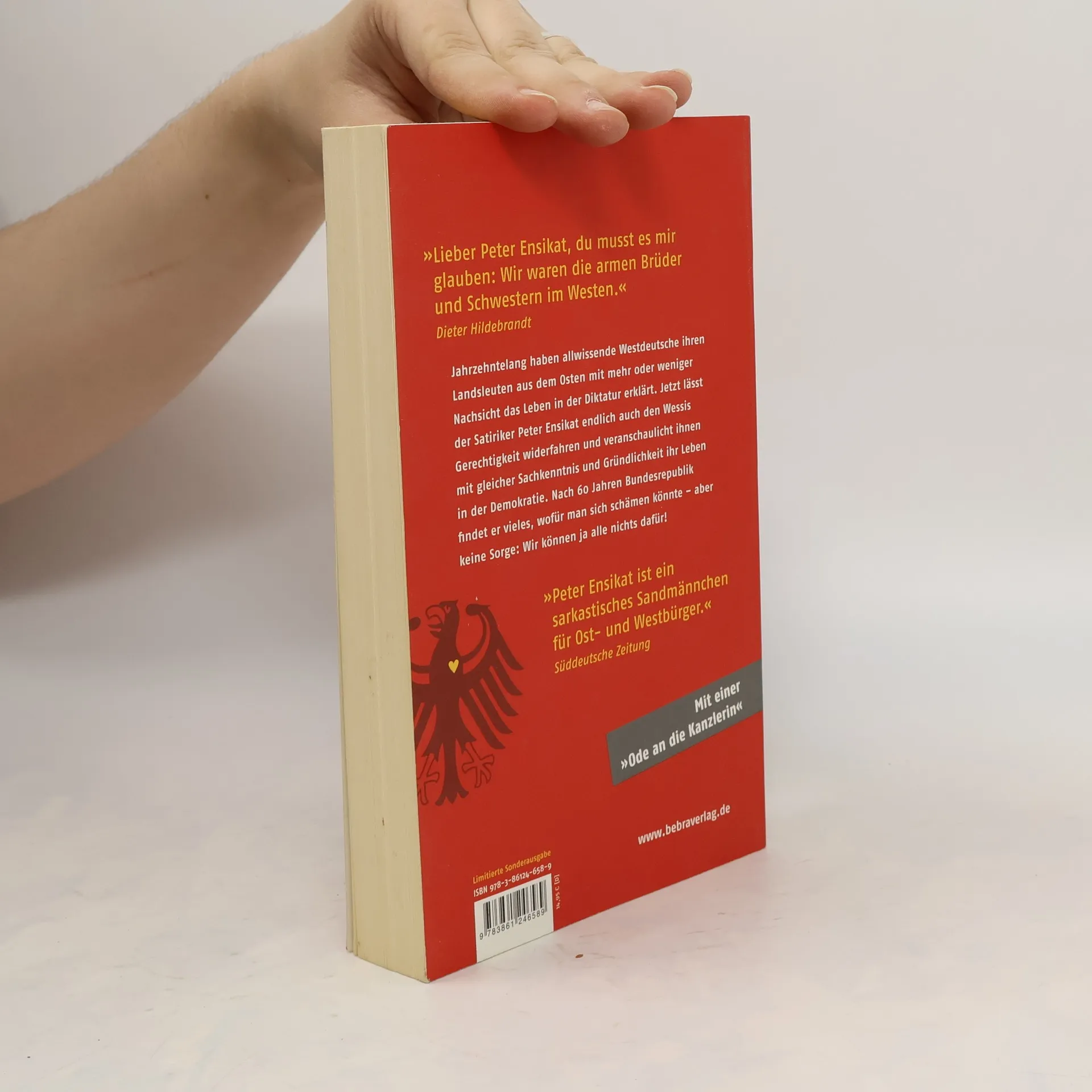 Jahrzehntelang haben allwissende Westdeutsche ihren Landsleuten aus dem Osten mit mehr oder weniger Nachsicht das Leben in der Diktatur erklärt. Jetzt lässt der Satiriker Peter Ensikat endlich auch den Wessis Gerechtigkeit widerfahren und veranschaulicht ihnen ihr Leben in der Demokratie. Nach 60 Jahren Bundesrepublik findet sich vieles, wofür man sich schämen könnte: der deutsche Tourist, die deutsche Sozialdemokratie, die deutschen Langzeitkanzler … – aber keine Sorge: Wir können ja alle nichts dafür! 'Peter Ensikat ist ein sarkastisches Sandmännchen für Ost und Westbürger.' Süddeutsche Zeitung