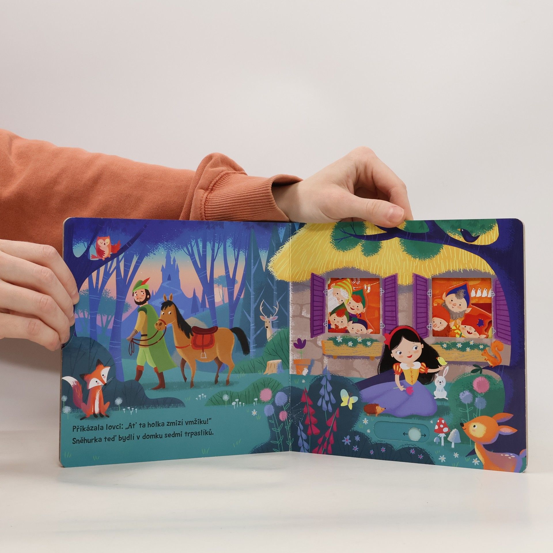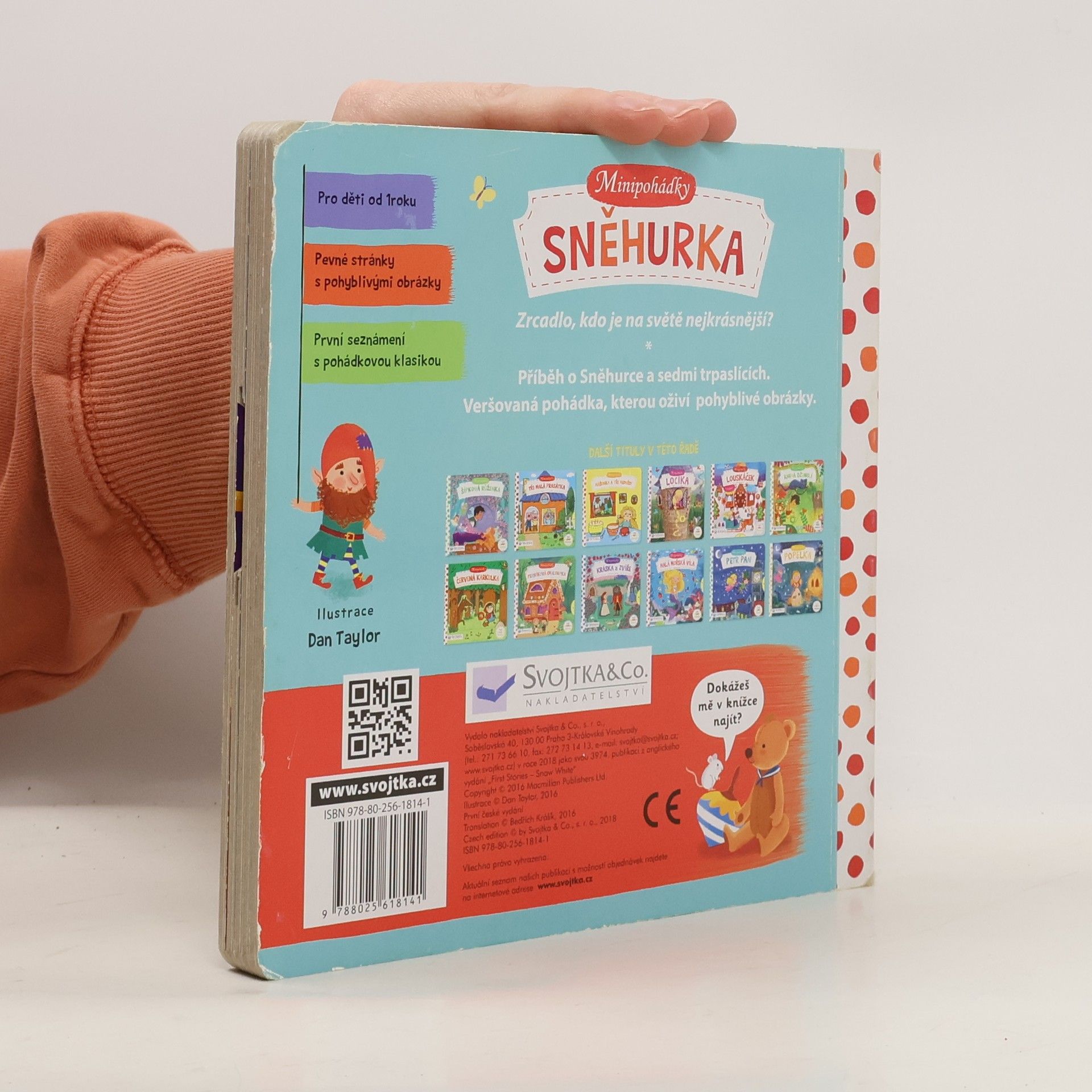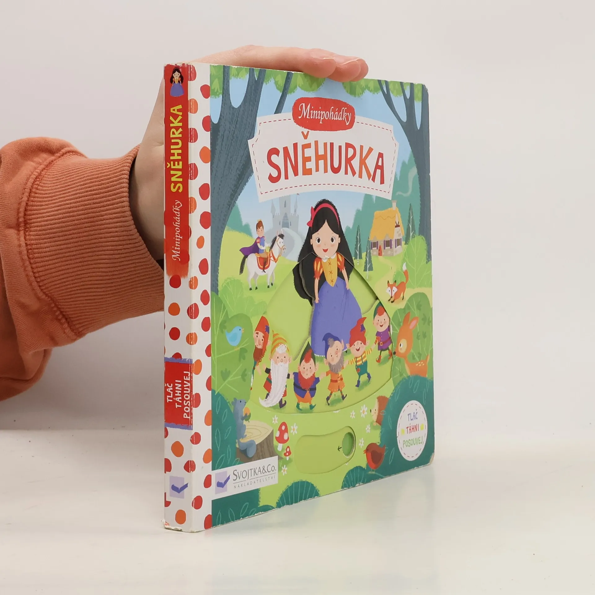 Zrcadlo, kdo je na světě nejkrásnější? Toto malé pohádkové leporelo s pevnými stránkami a pohyblivými obrázky je určeno dětem od jednoho roku a najdete v něm krátkou veršovanou pohádku o Sněhurce a sedmi trpaslících. Při jejím poslouchání si děti mohou procvičovat svou jemnou motoriku a zároveň si pohádkový příběh oživit – Sněhurka začne tancovat s trpaslíky, v zrcadle se objeví zlá královna, Sněhurka sní jablko a zavře oči... Tak vzhůru do čtení! Minipohádka o Sněhurce už na vás čeká!