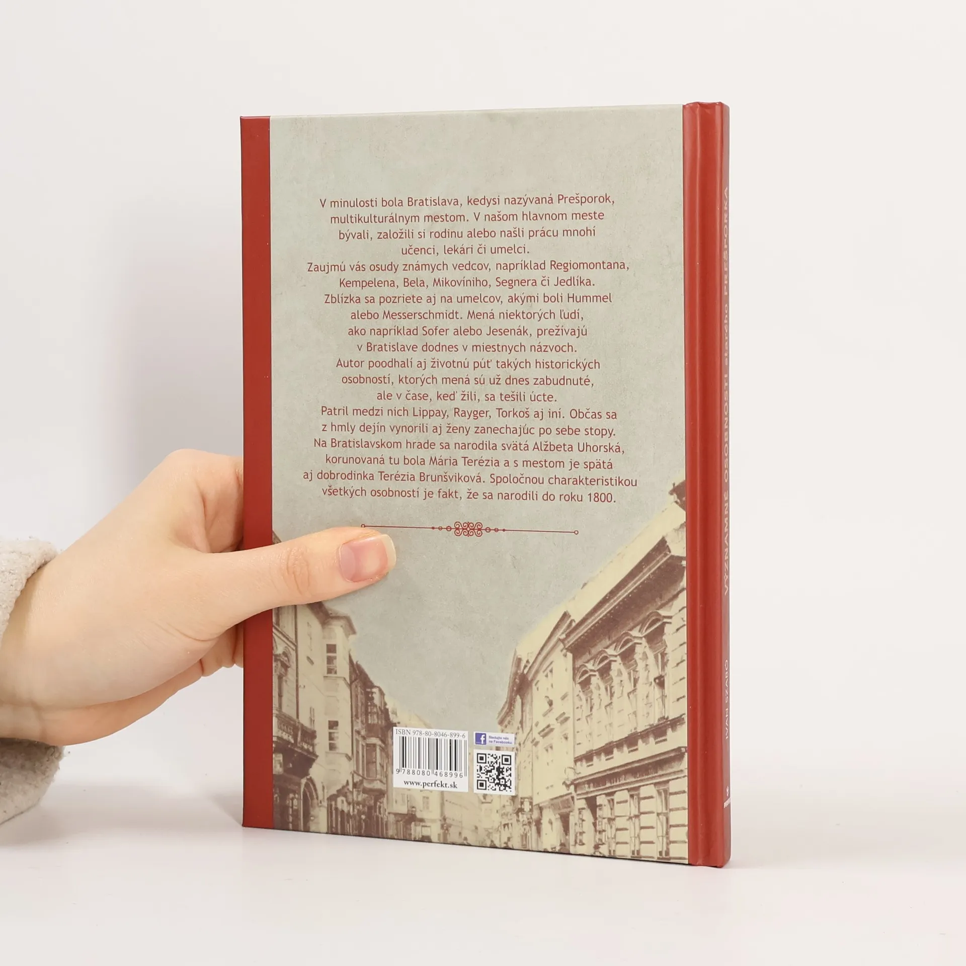 V minulosti bola Bratislava, respektíve Prešporok, multikultúrnym mestom. Narodili sa tu, bývali, založili si tu rodinu alebo tu našli prácu mnohí učenci, lekári či umelci. V knihe nájdete životné osudy známych vedcov, napríklad Regiomontana, Kempelena, Bela, Mikovíniho, Segnera či Jedlíka. Zblízka sa pozriete aj na umelcov, akými boli Hummel alebo Messerschmidt. Mená niektorých, ako napríklad Sofer alebo Jesenák, prežívajú v Bratislave dodnes v názvoch ulíc či oblastí. Poodhalíte však aj životnú púť takých historických osobností, ktorých mená sú už dnes zabudnuté, ale v čase, keď žili, sa tešili úcte prešporských obyvateľov. Patril medzi nich Lippay, Rayger, Torkoš aj iní. Občas sa z hmly dejín vynorili aj ženy zanechajúc po sebe stopy v našom terajšom hlavnom meste. Na Bratislavskom hrade sa narodila svätá Alžbeta Uhorská, korunovaná tu bola Mária Terézia a s mestom je spätá aj dobrodinka Terézia Brunšviková. Spoločnou charakteristikou všetkých týchto rôznorodých osobností je fakt, že sa narodili do roku 1800.