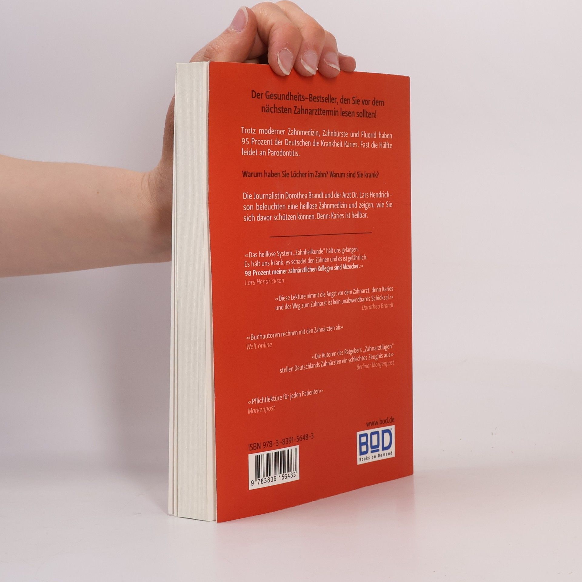 Ein Buch, das Sie vor dem nächsten Zahnarzttermin lesen sollten! Trotz moderner Zahnmedizin, Zahnbürste und Fluorid haben 95 % der Deutschen die Krankheit Karies. Fast die Hälfte leidet an Parodontitis. Warum haben Sie Löcher im Zahn? Warum sind Sie krank? Die Journalistin Dorothea Brandt und der Arzt Lars Hendrickson beleuchten eine heillose Zahnmedizin und zeigen, wie Sie sich davor schützen können. Denn: Karies ist heilbar. «Das heillose System „Zahnheilkunde“ hält uns gefangen. Es hält uns krank, es schadet den Zähnen und es ist gefährlich. 98% meiner zahnärztlichen Kollegen sind Abzocker.» Lars Hendrickson «Diese Lektüre nimmt die Angst vor dem Zahnarzt, denn Karies und der Weg zum Zahnarzt ist kein unabwendbares Schicksal.» Dorothea Brandt