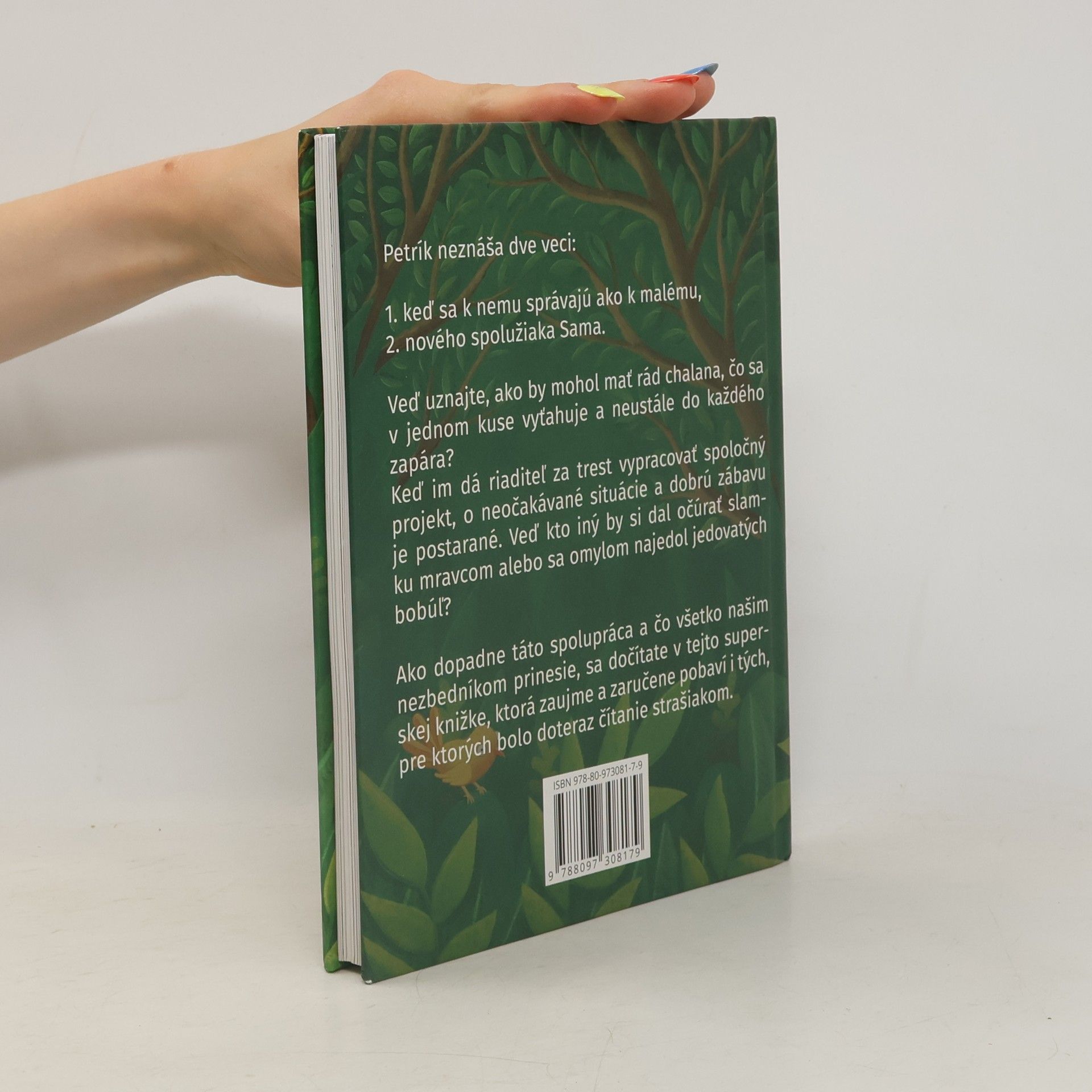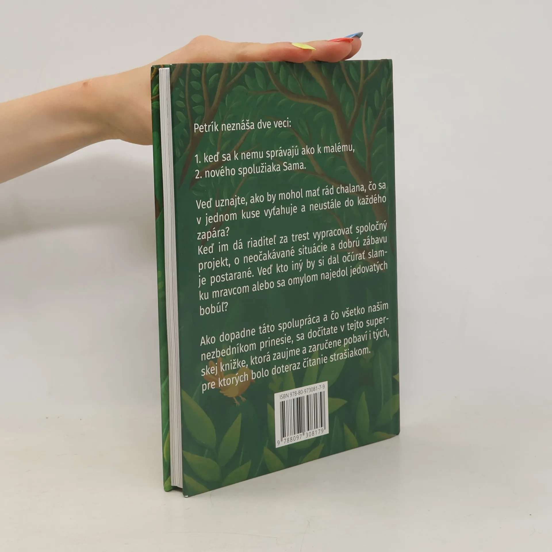 Petrík neznáša dve veci: 1. keď sa k nemu správajú ako k malému, 2. nového spolužiaka Sama. Veď uznajte, ako by mohol mať rád chalana, čo sa v jednom kuse vyťahuje a neustále do každého zapára? Keď im dá riaditeľ za trest vypracovať spoločný projekt, o neočakávané situácie a dobrú zábavu je postarané. Veď kto iný by si dal očúrať slamku mravcom alebo sa omylom najedol jedovatých bobúľ? Ako dopadne táto spolupráca a čo všetko našim nezbedníkom prinesie, sa dočítate v tejto superskej knižke, ktorá zaujme a zaručene pobaví i tých, pre ktorých bolo doteraz čítanie strašiakom.