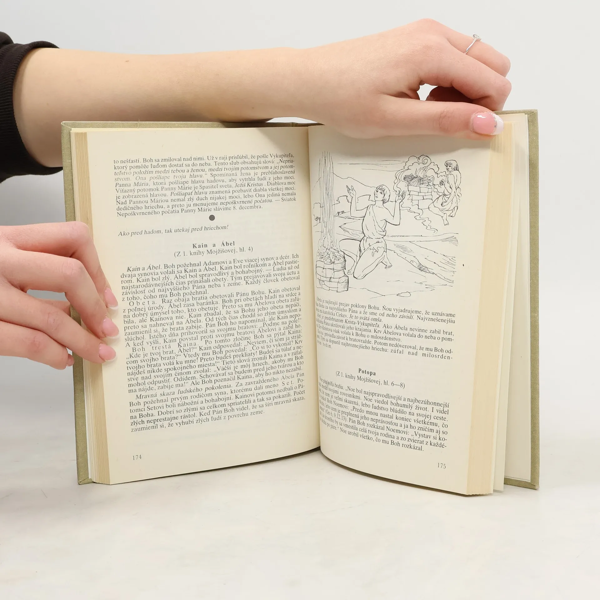 Kapitoly: I. O zjavených pravdách, ktoré máme veriť. II. O prikázaniach, ktoré máme zachovávať. III. O prostriedkoch milosti, ktoré máme užívať. Biblické dejiny-Starý zákon, Nový zákon, Liturgický rok, Modlitby, Ordinárium svätej omše. Siedme vydanie. Cena knihy v čase vydania: 28.- Kčs.