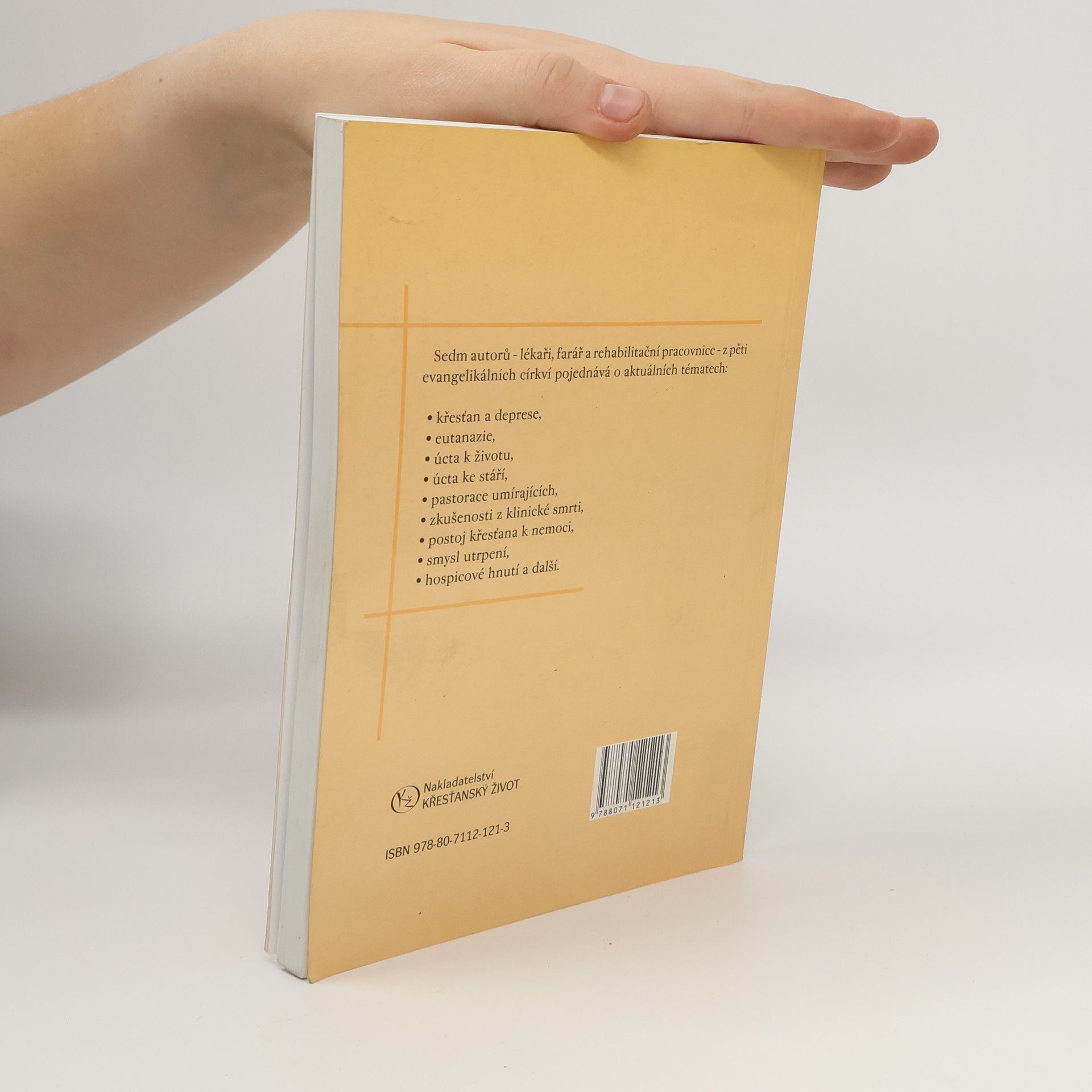 Sborník přednášek a stručná historie Sdružení křesťanských zdravotníků v ČR/ pořadatel Štěpán Rucki. Sedm autorů, lékaři, farář a rehabilitační pracovnice, z pěti evangelikálních církví pojednává o aktuálních tématech: křesťan a deprese, eutanazie, úcta k životu, úcta ke stáří, pastorace umírajících, zkušenosti z klinické smrti, postoj křesťana k nemoci, smysl utrpení, hospicové hnutí a další.
