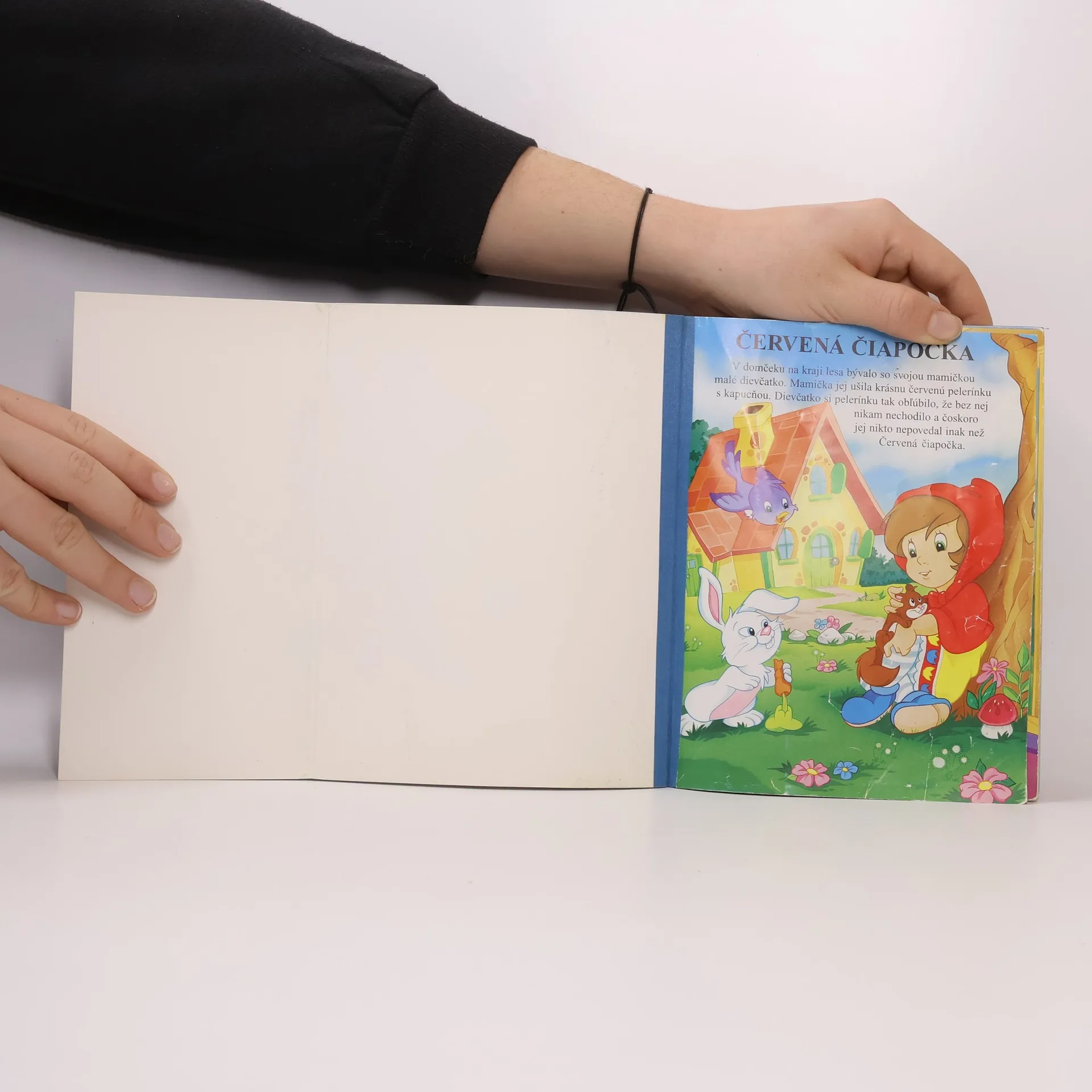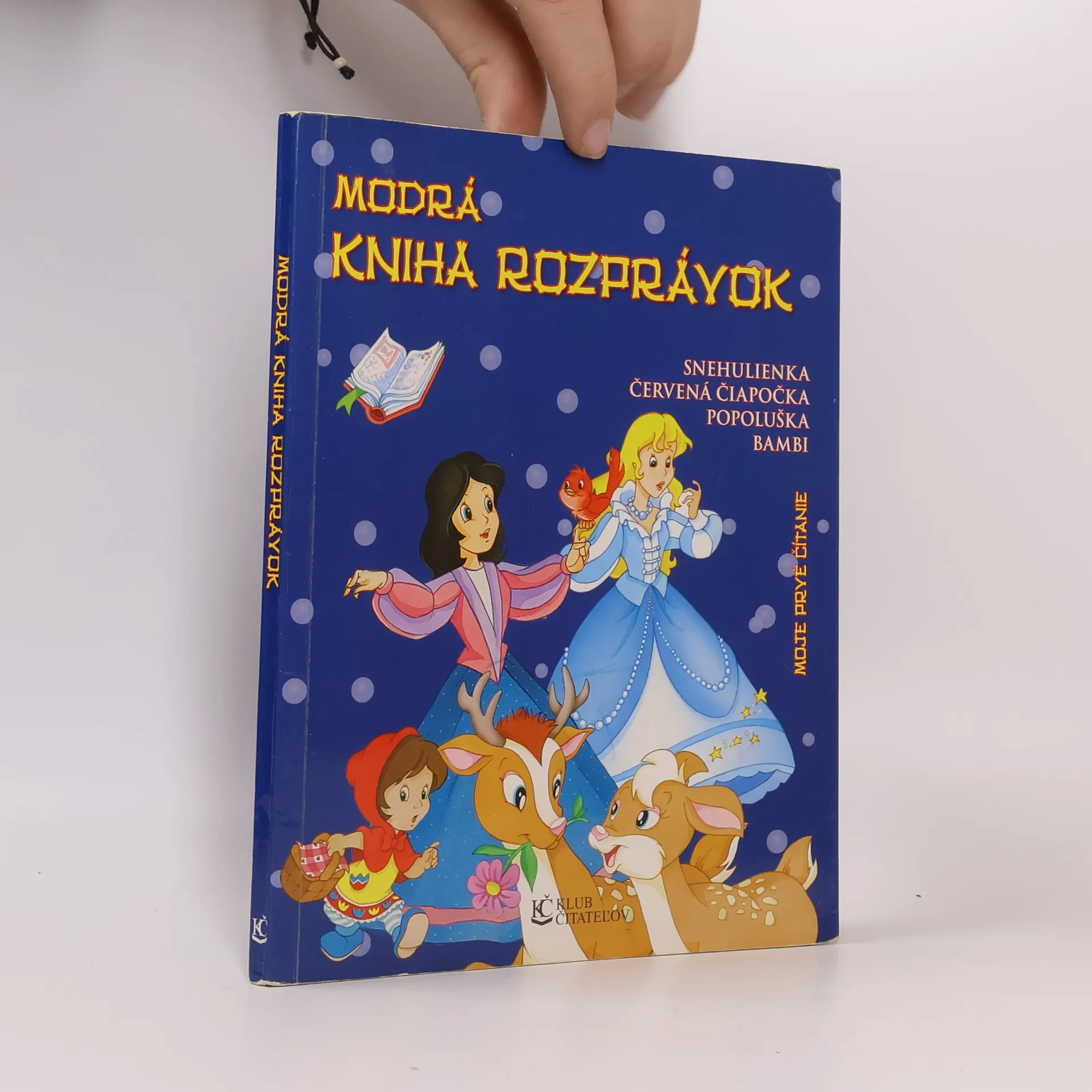 Táto knižka Modrá kniha rozprávok v sebe skrýva štyri rozprávky: Červená čiapočka, Snehulienka, Popoluška a Bambi. Sú rozprávané jednoduchým a zrozumiteľným štýlom, takže im porozumejú aj tie najmenšie deti. Navyše text je písaný veľkými písmenami, ktoré sú vhodné aj pre začínajúcich čitateľov. Čo však na tejto knihe zaujme na prvý pohľad, sú veselé celostránkové ilustrácie.