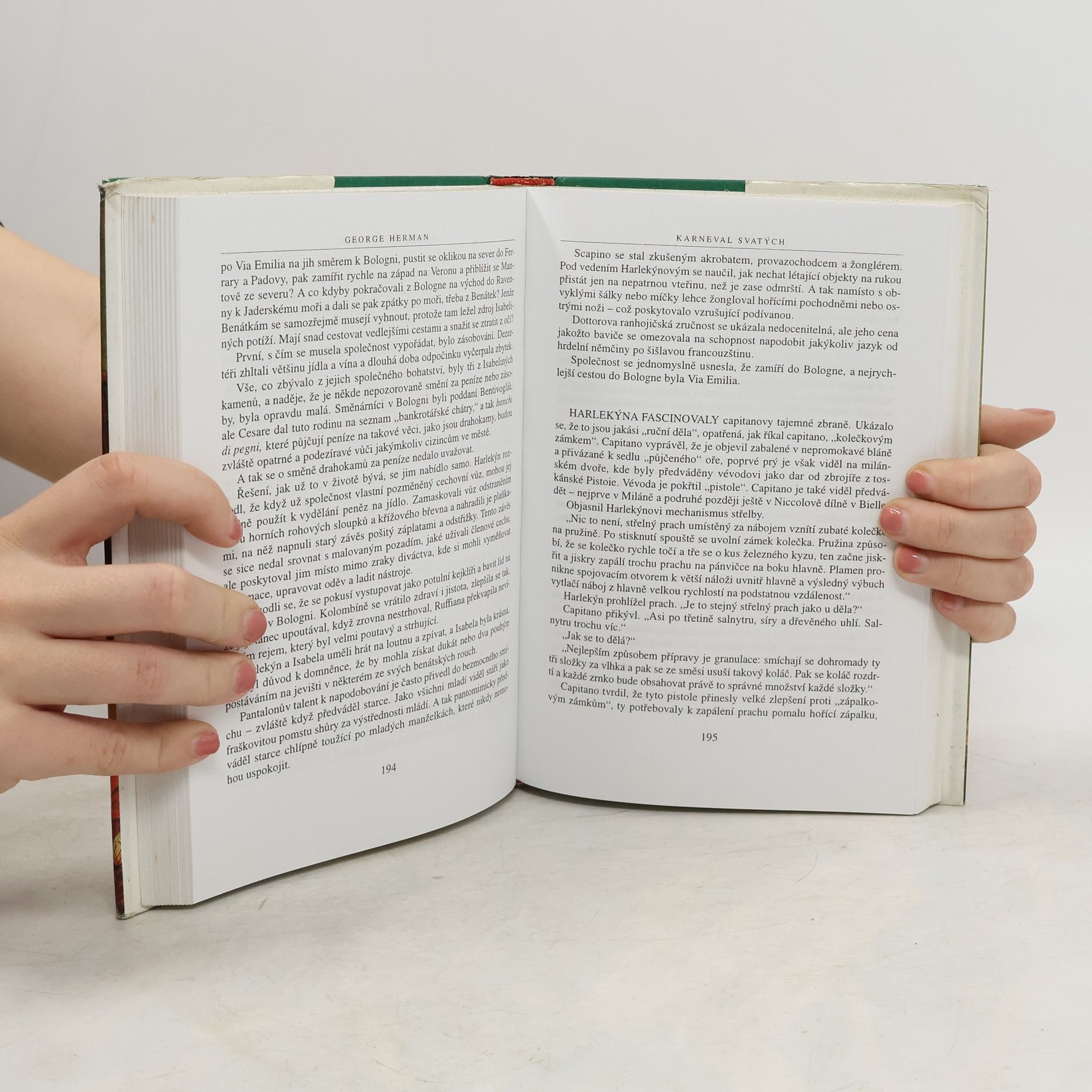 Román ve stylu commedie dell arte. Období, kdy skupina potulných kejklířů a herců získala toto označení, je charakterizováno jmény Leonardo da Vinci, Cesare Borgia, N. Machiavelli aj. Období renesance, bouřlivých proměn v Itálii, bojů s Francouzi i mezi znepřátelenými vládci drobných knížectví, bojů o papežský stolec, kruté bídy a nemocí. Obratně, poutavě napsané vyprávění s velkou dávkou humorného nadhledu. Autor je odborník na dané téma, poprvé tuto látku zpracoval ve formě divadelní hry.