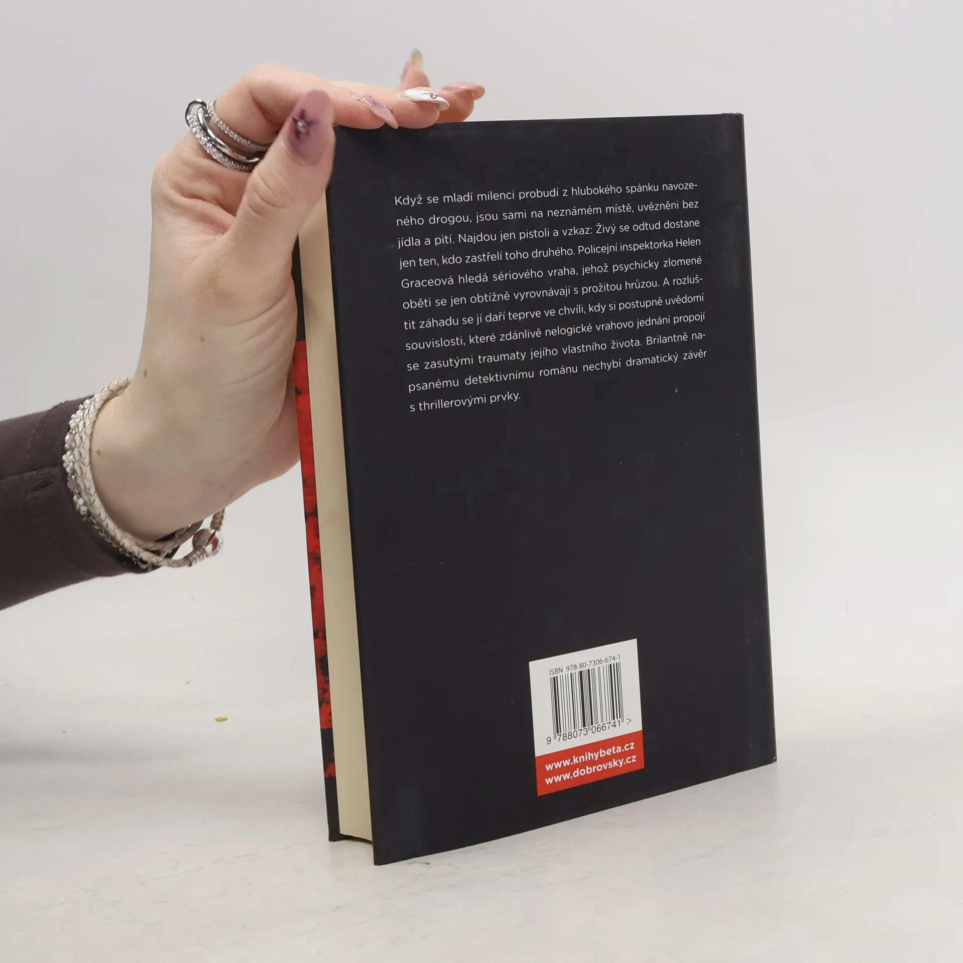 Když se mladí milenci probudí z hlubokého spánku navozeného drogou, jsou sami na neznámém místě, uvězněni bez jídla a pití. U pohozené pistole leží vzkaz: Živý se odtud dostane jen ten, kdo zastřelí toho druhého… Policejní inspektorka Helen Graceová hledá sériového vraha, jehož psychicky zlomené oběti se jen obtížně vyrovnávají s prožitou hrůzou. A rozluštit záhadu se jí daří teprve ve chvíli, kdy si postupně uvědomí souvislosti, které zdánlivě nelogické vrahovo jednání propojí se zasutými traumaty jejího vlastního života. Brilantně napsanému detektivnímu románu nechybí dramatický závěr s thrillerovými prvky.