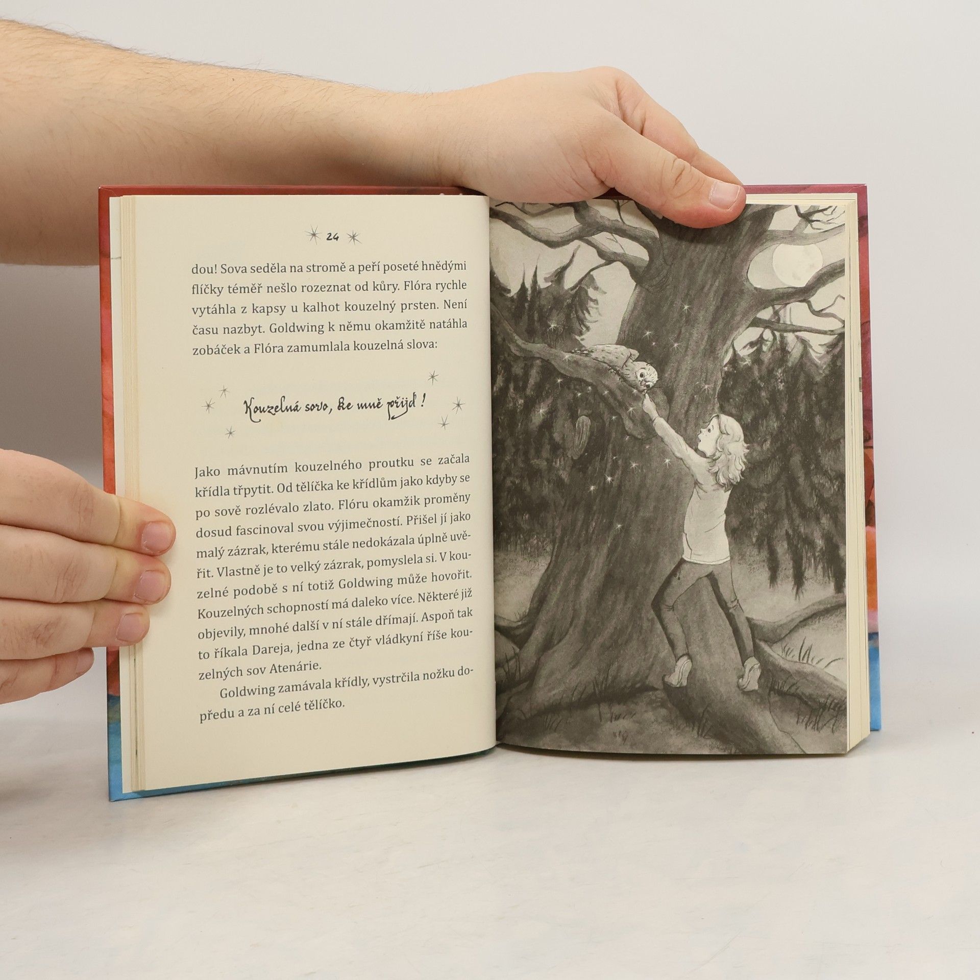 Se zlatými křídly vstříc dobrodružství! Flóra a Goldwing zažijí nečekanou návštěvu malého sýčka Amiga. In on byl dřív kouzelnou sovou. Jenže pírko z Atenárie, které opatroval po celý život, přestalo zářit. Co se jen stalo? Flóra a Goldwing objeví, že říši kouzelných sov Atenárii hrozí nebezpečí a ony jí mohou pomoct obnovit síly! Jenže jak to udělat? Má snad Flóřina babička, která přijela z Řecka na návštěvu, rozhodující vodítko?