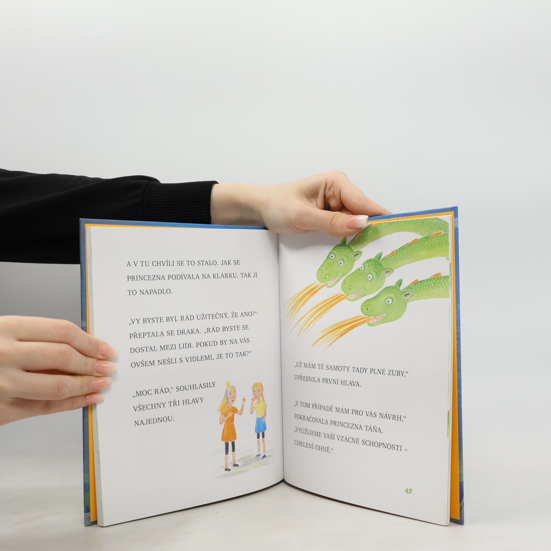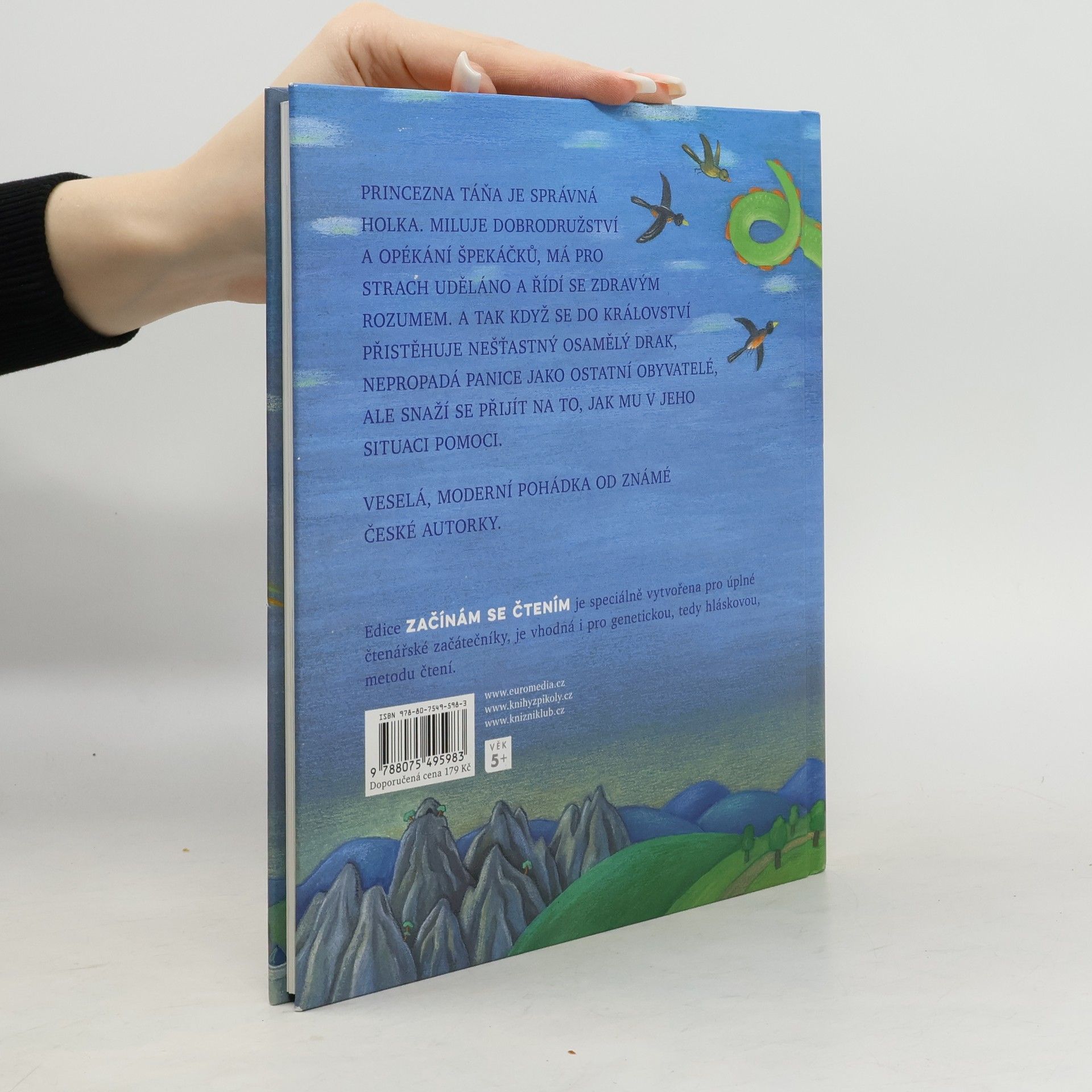 Veselá moderní pohádka od známé české autorky o neohrožené princezně, která vidí svět kolem sebe, jaký je, a při rozhodování se neřídí strachem a předsudky, ale svým zdravým rozumem. A tak když se do království přistěhuje nešťastný osamělý drak, nepropadá panice jako ostatní obyvatelé, ale snaží se přijít na to, jak mu v jeho situaci pomoci. Knížka je vhodná pro nácvik genetické metody prvního čtení, neboť je vysázená velkými písmeny.