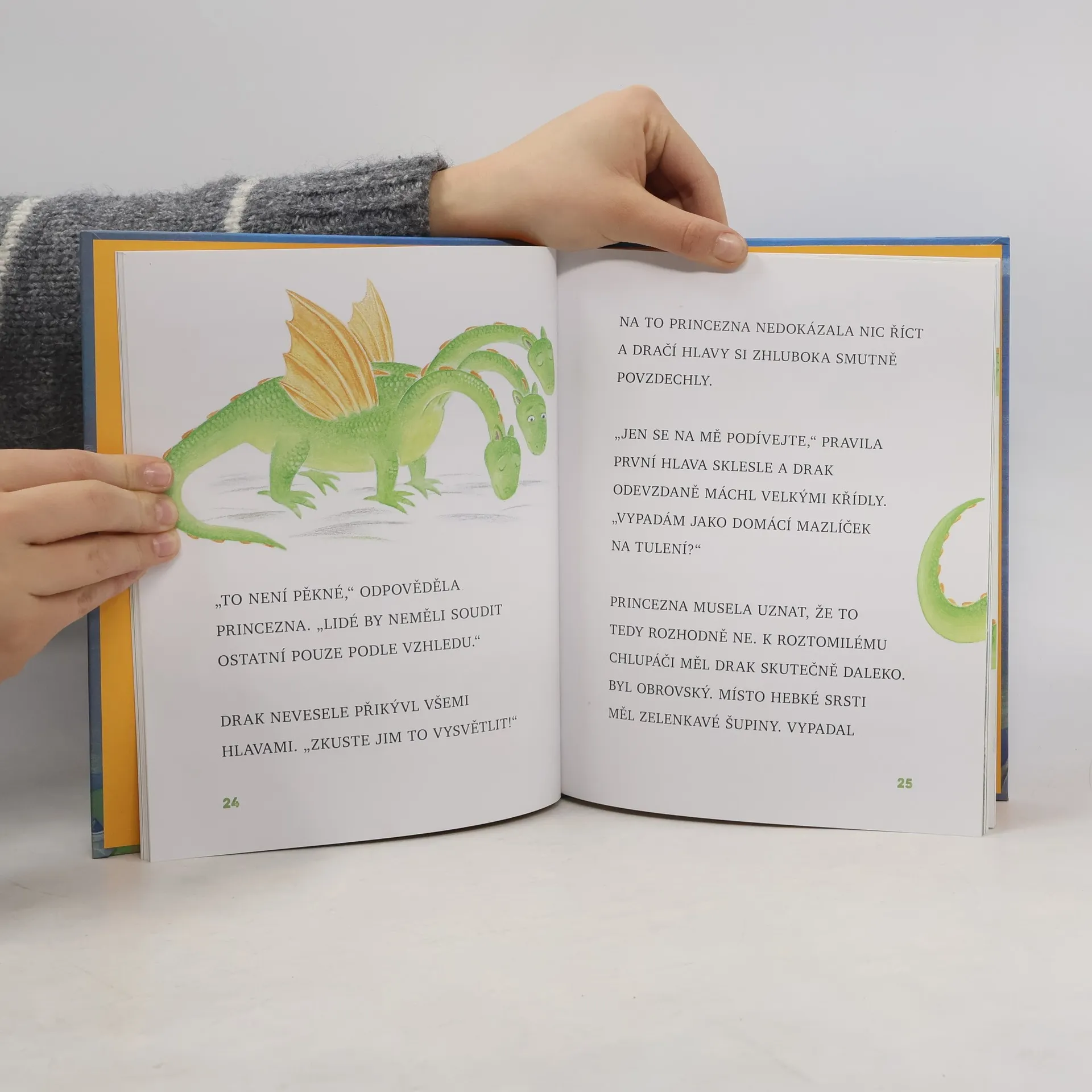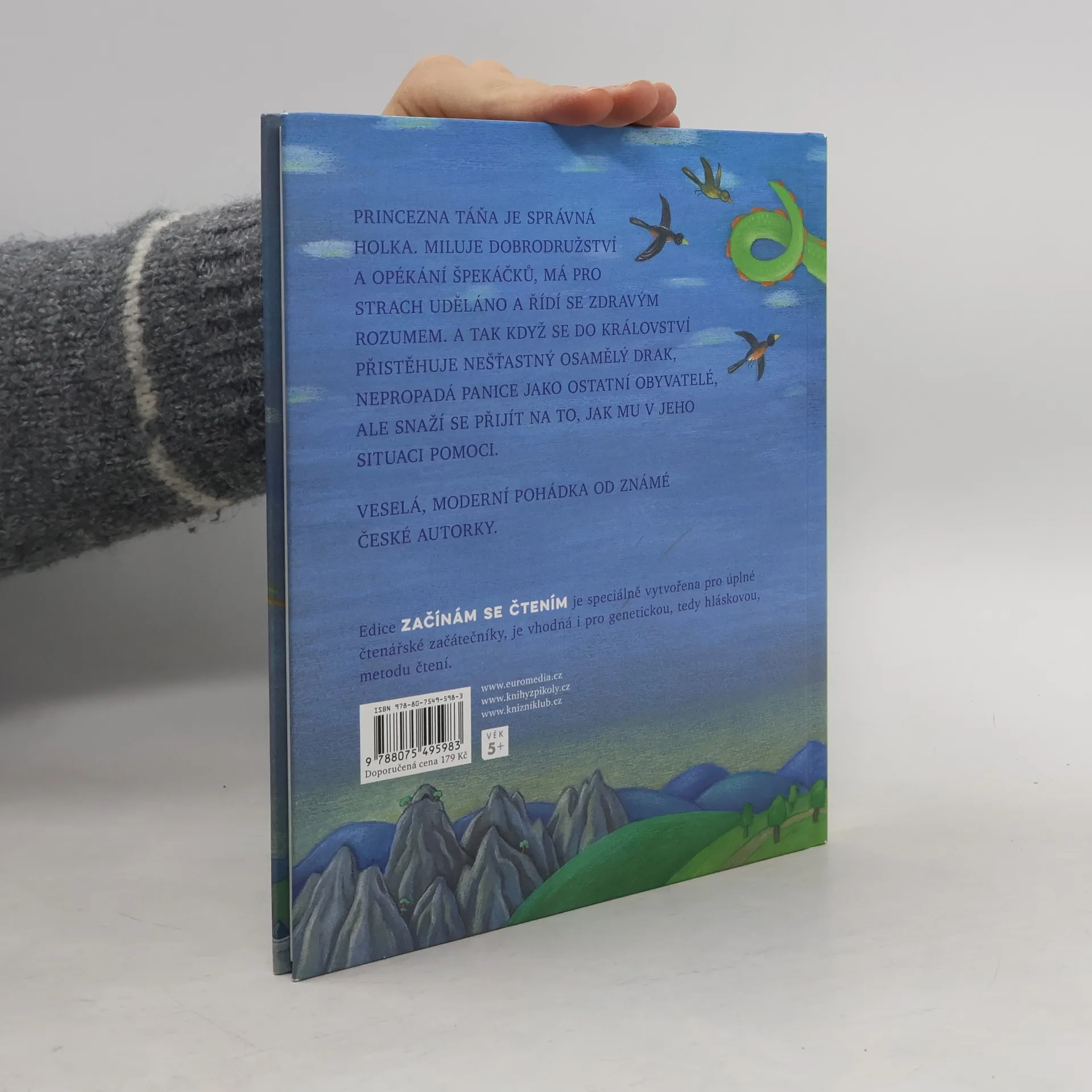Veselá moderní pohádka od známé české autorky o neohrožené princezně, která vidí svět kolem sebe, jaký je, a při rozhodování se neřídí strachem a předsudky, ale svým zdravým rozumem. A tak když se do království přistěhuje nešťastný osamělý drak, nepropadá panice jako ostatní obyvatelé, ale snaží se přijít na to, jak mu v jeho situaci pomoci. Knížka je vhodná pro nácvik genetické metody prvního čtení, neboť je vysázená velkými písmeny.
