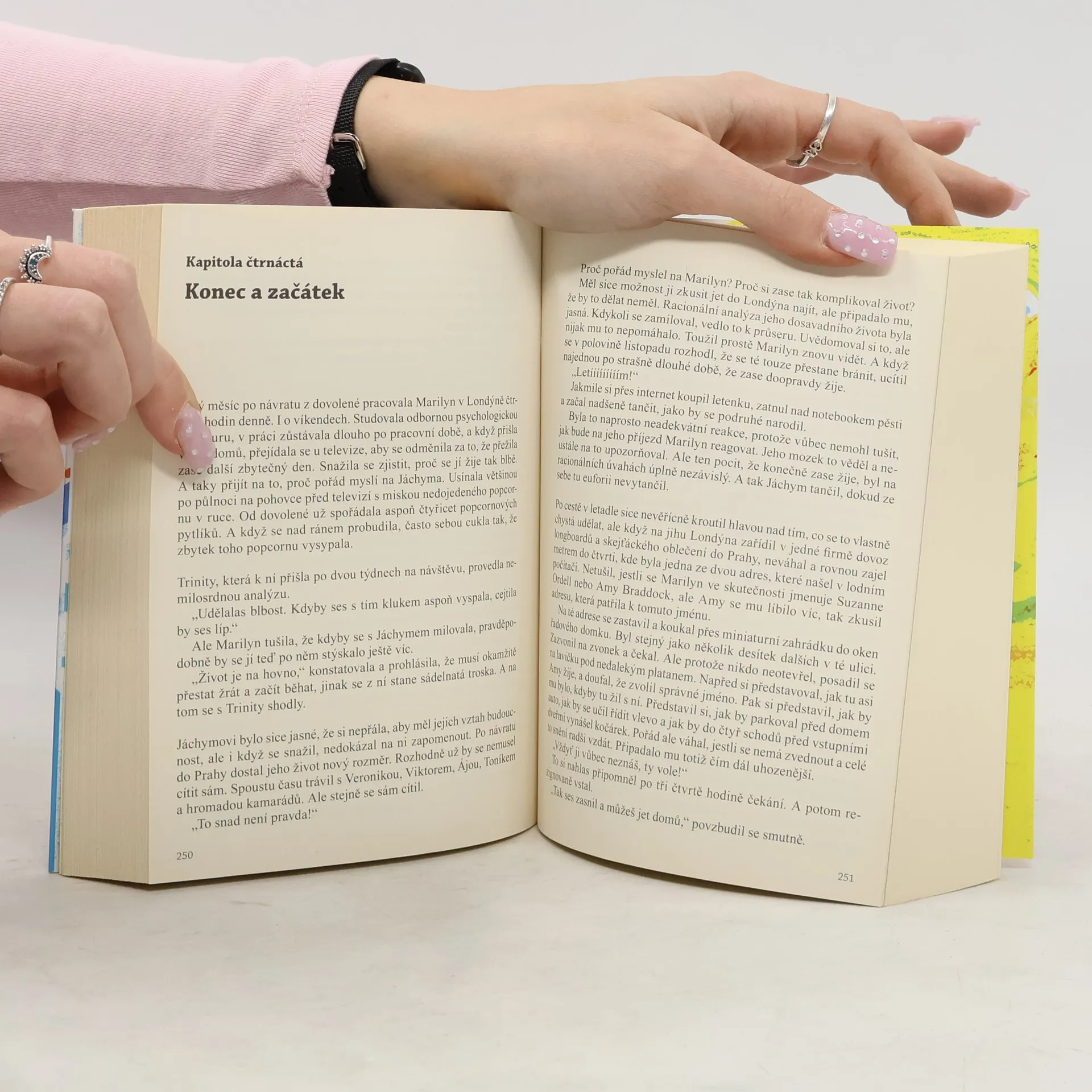 Nový dvojromán Patrika Hartla je možné začít číst z kterékoli strany. Vyberte si! Příběh sourozenců Veroniky a Jáchyma budete prožívat podle toho, který začátek zvolíte. Buďto do života skočíte jako Jáchym volným pádem z výšky čtyř tisíc metrů nebo se jako Veronika budete statečně prokousávat citovými nástrahami ode dne ke dni. Prožijete dva příběhy v jednom. Jako on a jako ona. Nebo v opačném pořadí, což bude překvapivě jiné, než byste očekávali... Můžete s nimi hledat štěstí, doufat, věřit, dělat chyby a napravovat je. Budete se o ně bát, fandit jim a zamilovávat se s nimi. A nejenom s nimi. Taky s Eliškou, Kubou, Dedém, Monikou, Viktorem, Amy, Kryštofem, Danou, Viki a Ondřejem. Protože štěstí a lásku hledá každý. I když to zní jako fráze.