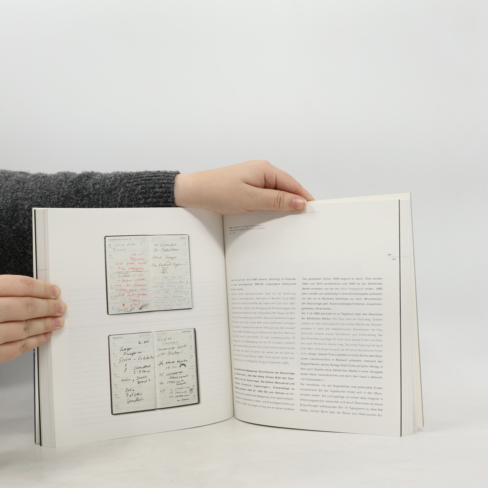Zum Geleit. Ernst Jünger, der Schreiber von Ulrich Raulff Ernst Jünger im Archiv gelesen. Sechs Stereoskopien von Stephan Schlak Die Ausstellung von Heike Gfrereis in Verbindung mit Ellen Strittmatter und Sonja Lehmann Ernst Jünger (1895–1998). Der Textarbeiter Am Nullpunkt Positivistische Etappe Blüten und Reime Wortgewitter Totale Tinte Ausschneidesysteme Klippen Arbeit am Mythos Götter und Anschlüsse I Götter und Anschlüsse II Letzte Worte Postalische Jagden. Ernst Jüngers Präsenz in der deutschen Literatur und Publizistik nach 1945 von Detlev Schöttker Helmut Lethen im Gespräch mit Stephan Schlak Karl Heinz Bohrer im Gespräch mit Stephan Schlak Zum Katalog Archivalische Probleme mit Selbstklebebändern
