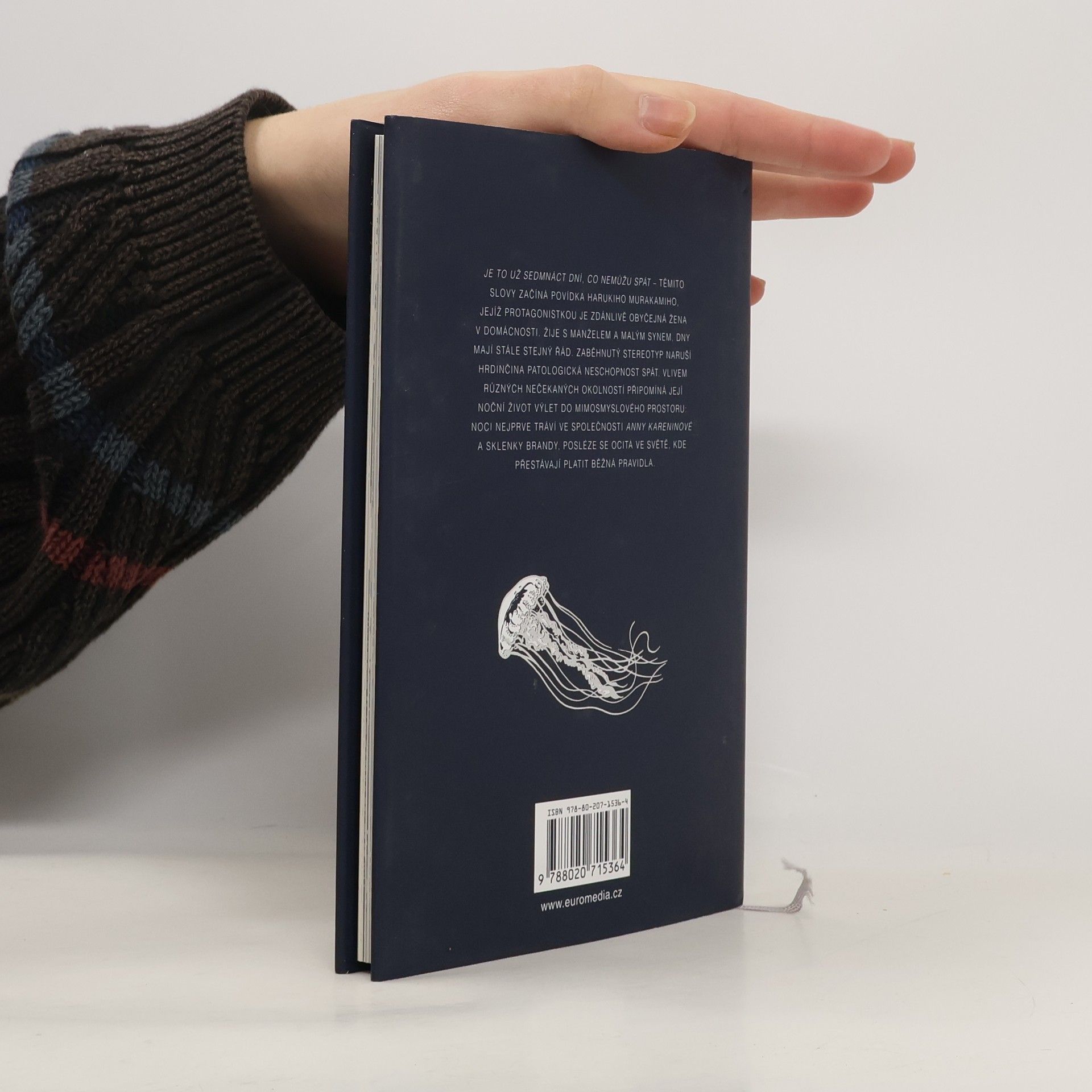„Je to už sedmnáct dní, co nemůžu spát,“ tak začíná příběh Harukiho Murakamiho, jehož protagonistkou je zdánlivě obyčejná žena v domácnosti. Vlivem různých nečekaných okolností připomíná její noční život výlet do mimosmyslového prostoru. Ve světě, který je naprosto odlišný od našeho, prozkoumává svou rodinu, sama sebe, i význam života a smrti. Ilustrační doprovod ke knize vytvořila známá německá grafička Kat Menschik.