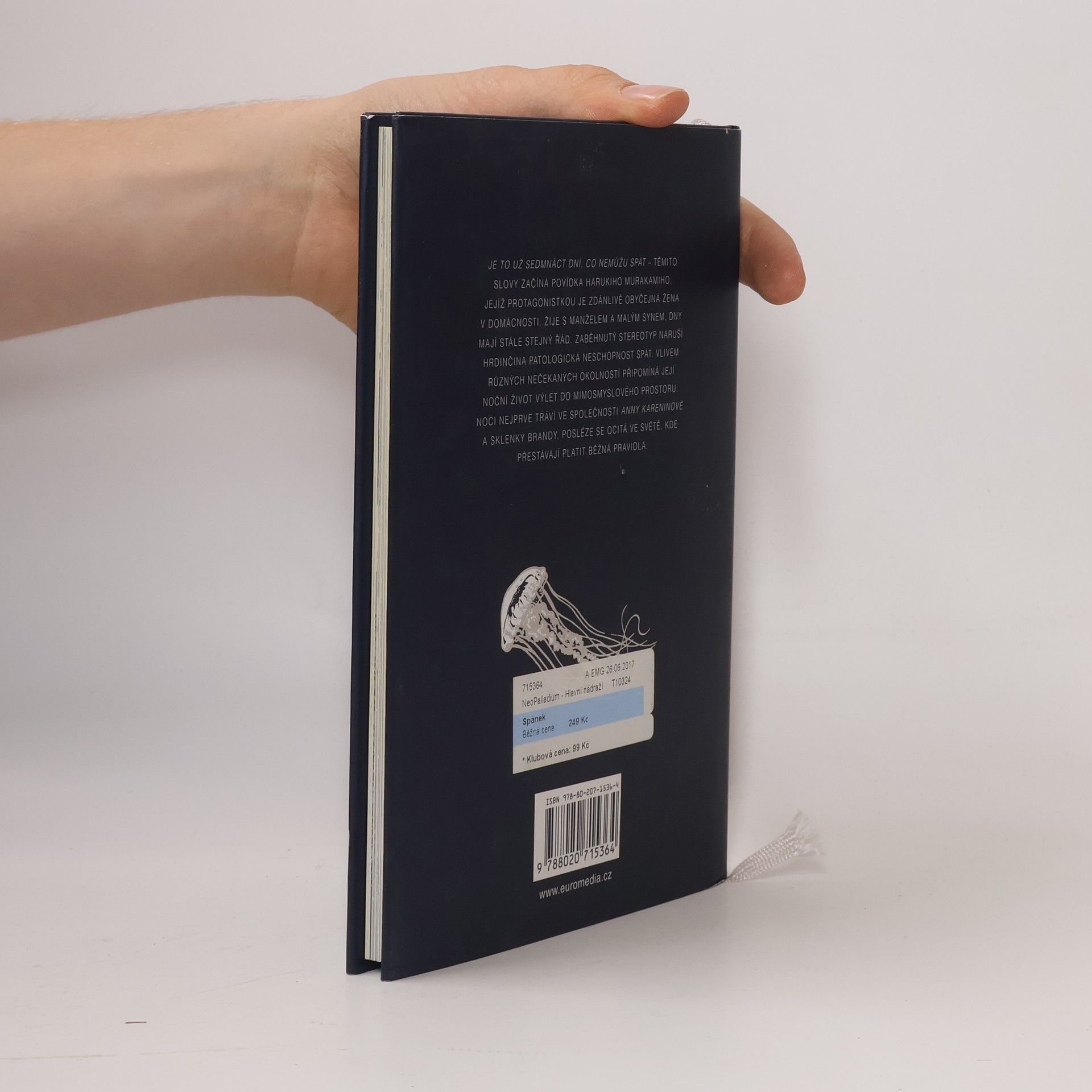 „Je to už sedmnáct dní, co nemůžu spát,“ tak začíná příběh Harukiho Murakamiho, jehož protagonistkou je zdánlivě obyčejná žena v domácnosti. Vlivem různých nečekaných okolností připomíná její noční život výlet do mimosmyslového prostoru. Ve světě, který je naprosto odlišný od našeho, prozkoumává svou rodinu, sama sebe, i význam života a smrti. Ilustrační doprovod ke knize vytvořila známá německá grafička Kat Menschik.