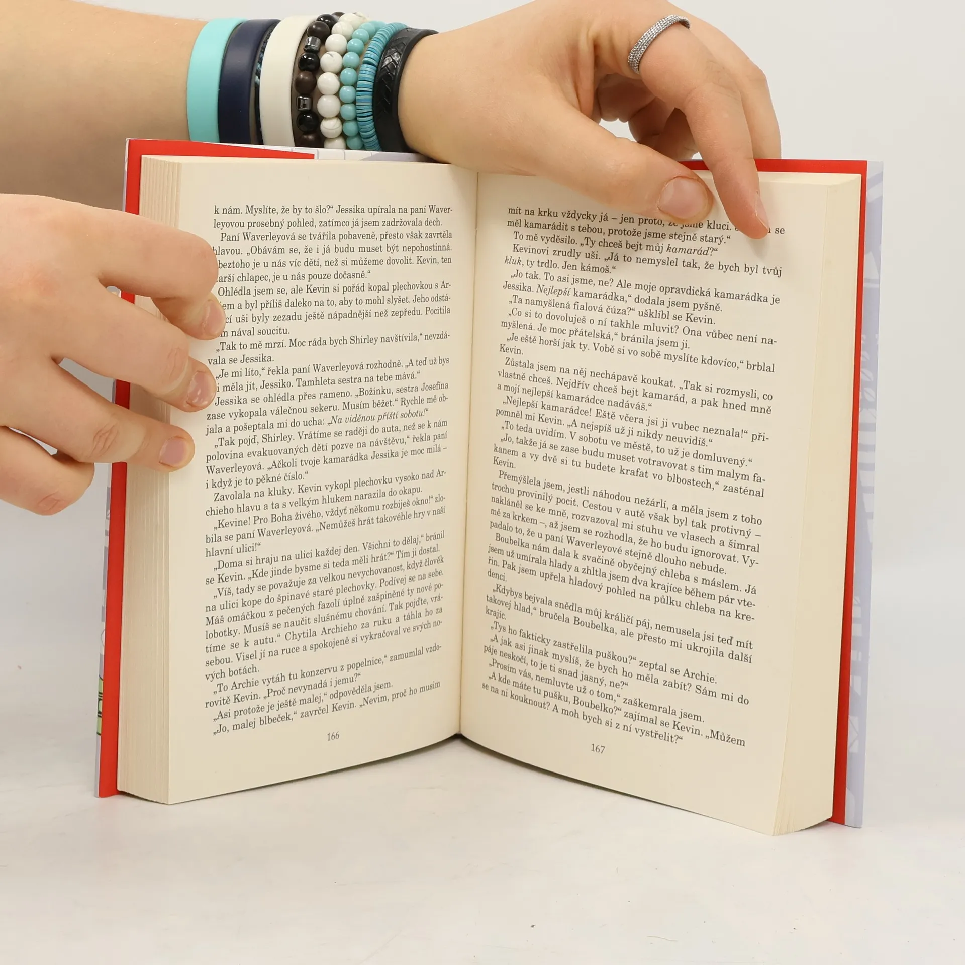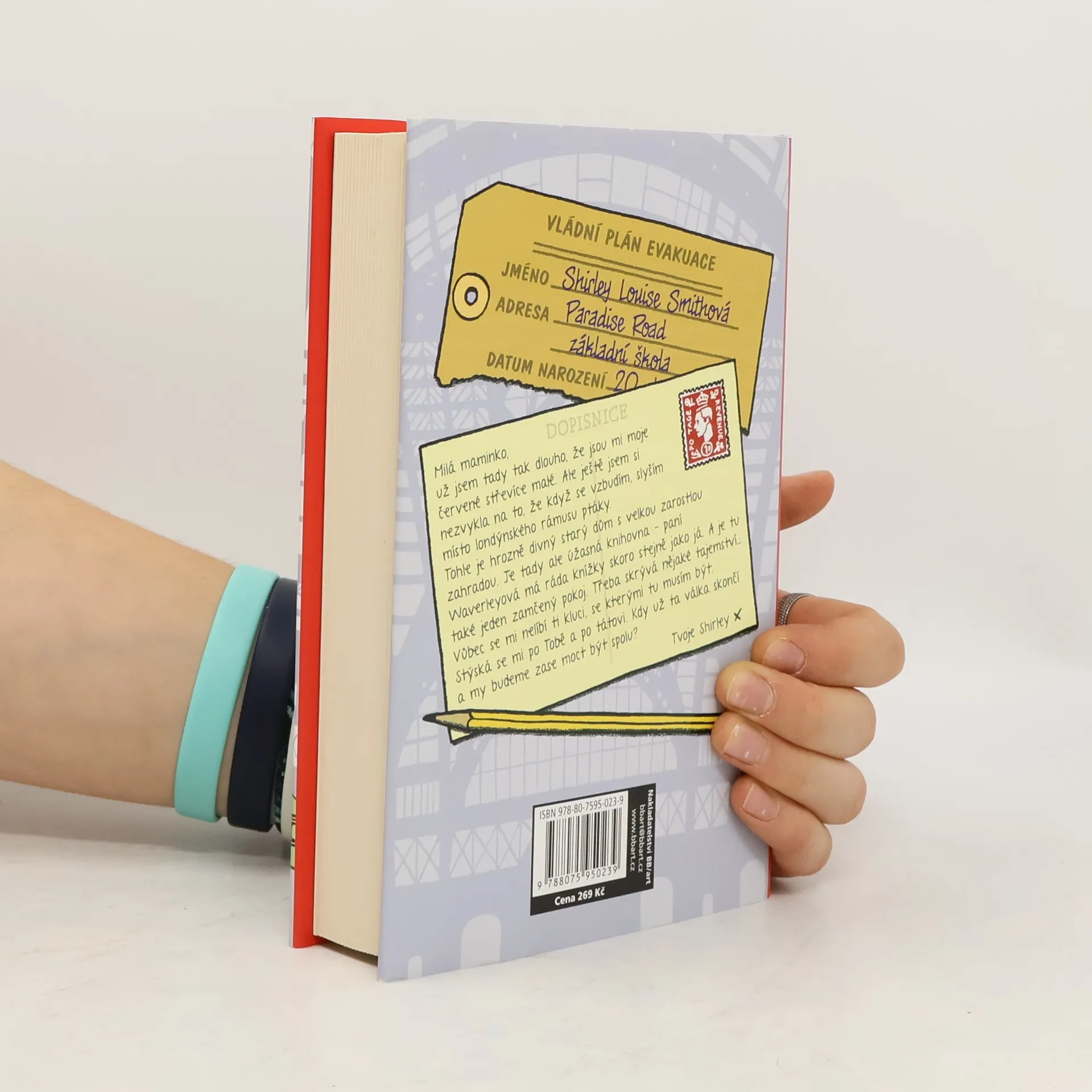 Může jedno evakuované děcko najít místo, kam by mohlo patřit? Je září 1939 a Londýn se připravuje na druhou světovou válku. Začínají se narychlo stavět protiletecké kryty a lidé si musejí zatemnit okna. Desetiletou Shirley vzbudí maminka nezvykle brzy a řekne jí, že si musí rychle sbalit. Shirley neví, kam pojede, ani co se s ní bude dít, až tam přijede. Dozví se jen to, že jede na „takové malé prázdniny“. Shirley je evakuována do poklidného venkovského městečka, které jí připadá jako na druhém konci světa. Ubytují ji spolu se dvěma chlapci z chudinské čtvrti Londýna: nešikovným a utrápeným Kevinem a sebevědomým rošťákem Archiem. Pobyt ve zvláštním poloprázdném Červeném domě s tajuplnou a uzavřenou paní Waverleyovou jim změní život navždy. Oblíbená autorka bestsellerů pro děti a mládež umísťuje svůj román do tohoto období dějin poprvé. Nádherný příběh o přátelství, ztrátě a odvaze je určen především dívkám ve věku zhruba od deseti do třinácti let.