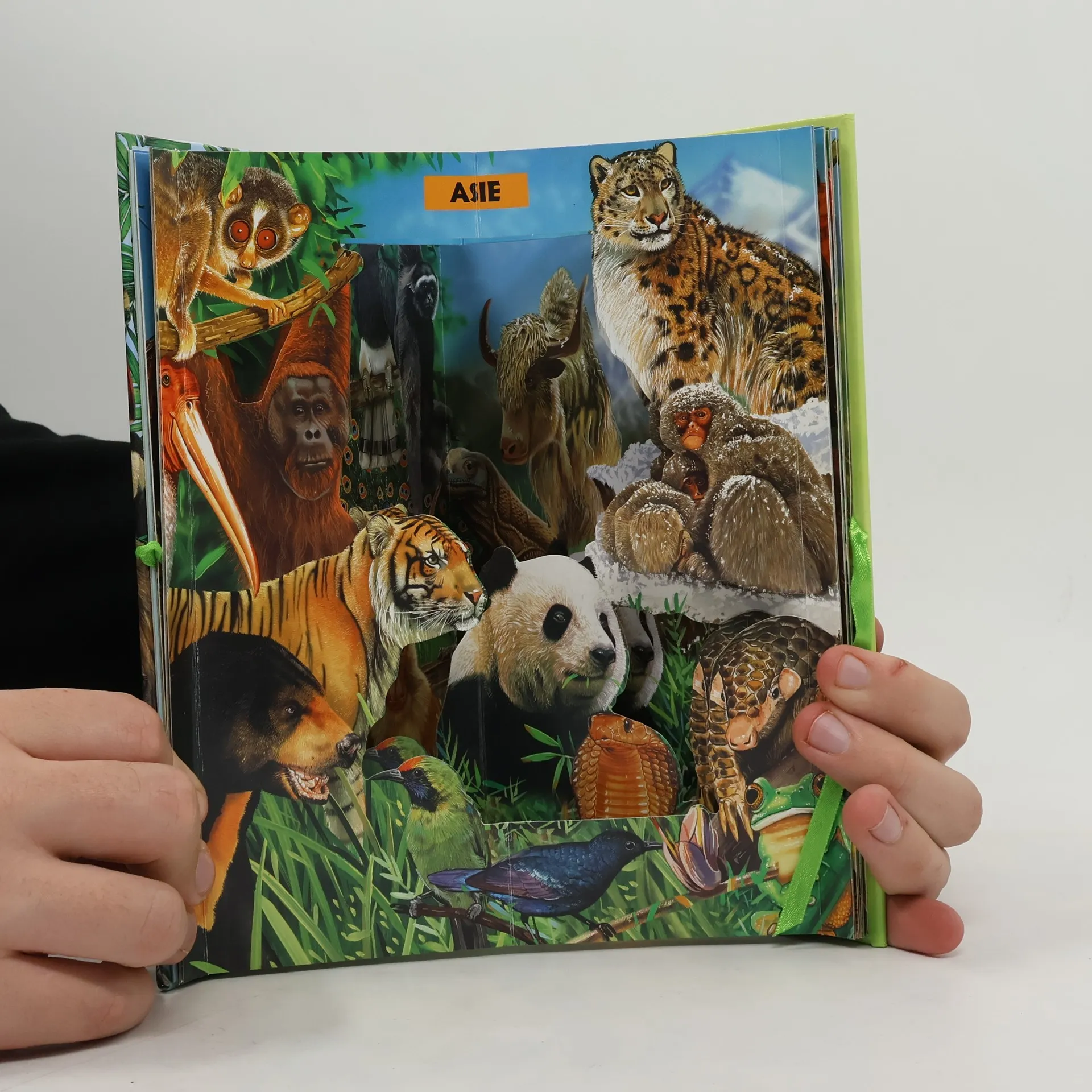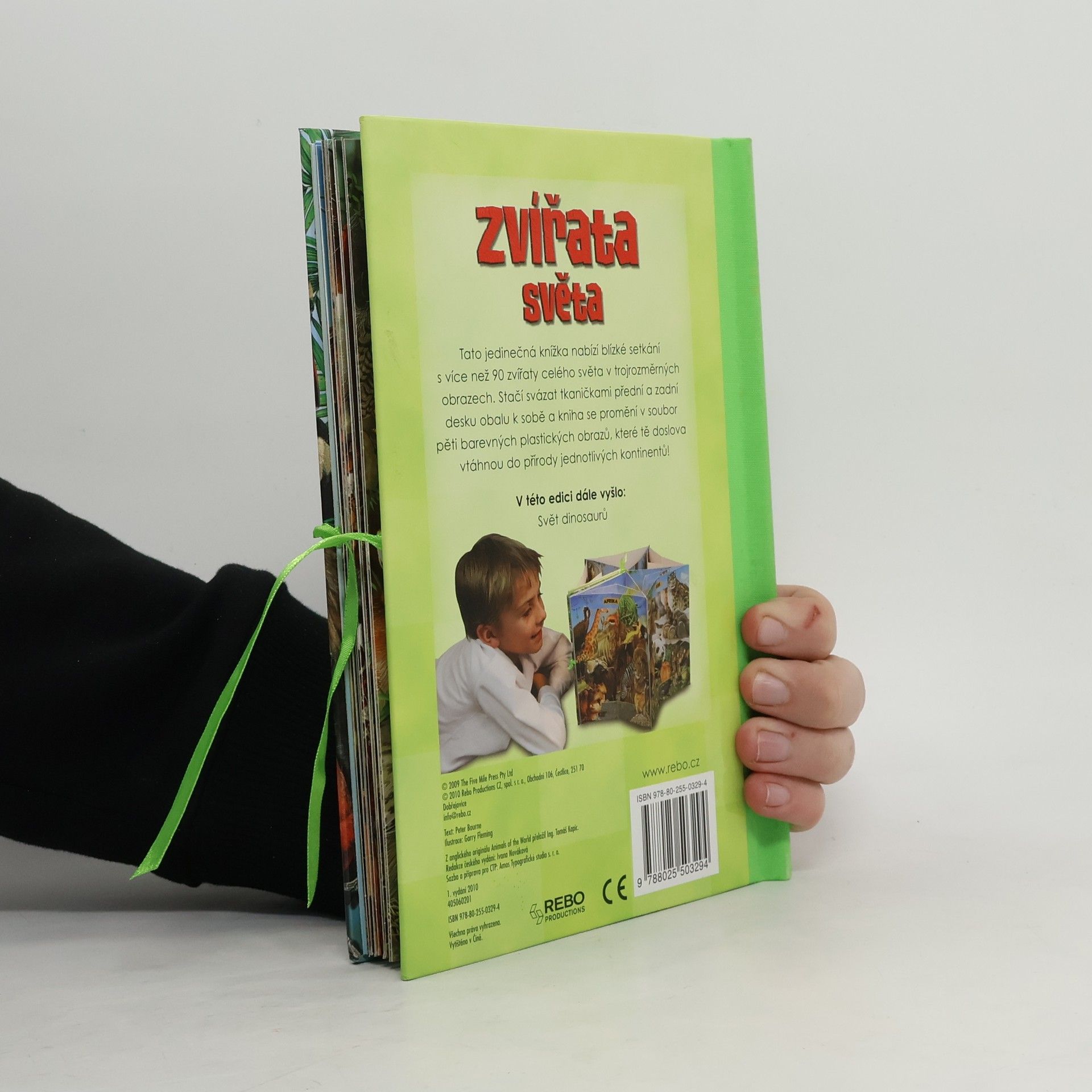 Tato jedinečná knížka nabízí blízké setkání s více než 90 zvířaty celého světa v trojrozměrných obrazech. Stačí svázat tkaničkami přední a zadní desku obalu k sobě a kniha se promění v soubor pěti barevnách plastických obrazů z přírody jednotlivých kontitnentů.
