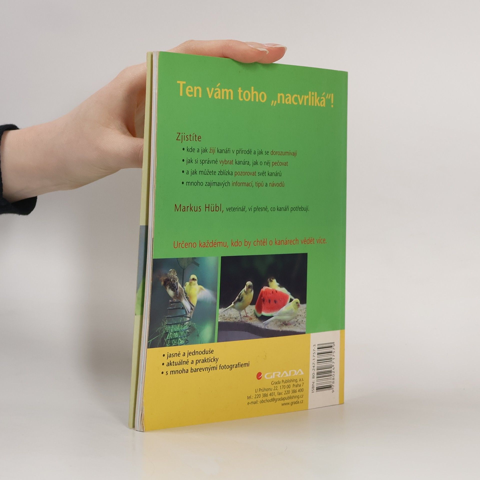 Kanárek - každý z nás si představí hlavně jeho pěvecké nadání. Ale kanárek je také velmi zábavný a čilý společník, jehož pozorováním můžete trávit celé hodiny. Naučíme vás, jak si správného kanára vybrat a hlavně jak mu zajistit optimální životní podmínky - dostatečně velkou a správně zařízenou klec, společnost, zábavu a také na čem si kanár pochutná a co mu bude prospěšné. To vše je doplněno informacemi o každodenní péči, první pomoci a výchově mláďat. Na závěr knihy jsou zařazeny dvě stránky určené dětem.