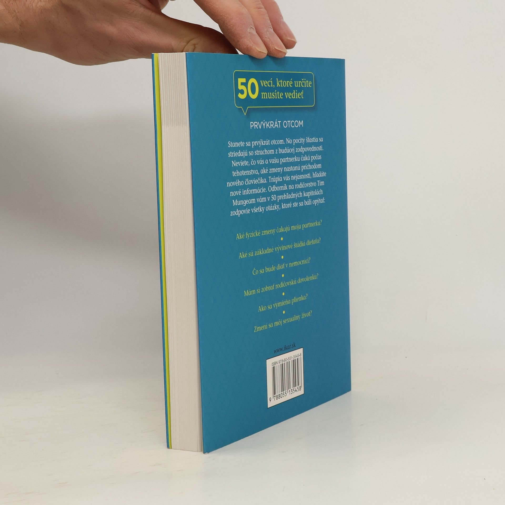 Stávate sa prvýkrát otcom a prežívate zmes šťastia a strachu z budúcej zodpovednosti. Neistota ohľadom tehotenstva a príchodu nového človiečika vás trápi, a preto hľadáte informácie. Odborník na rodičovstvo Tim Mungeam vám v 50 prehľadných kapitolách zodpovie otázky, ktoré ste sa báli opýtať, ako sú fyzické zmeny partnerky, vývinové štádiá dieťaťa, proces v nemocnici, rodičovská dovolenka, výmena plienok a zmeny v sexuálnom živote. Keď sa dozviete, že sa stanete otcom, váš život sa navždy zmení. Hoci biologicky sa vaša úloha končí, najdôležitejšie vás ešte len čaká – podporiť budúcu matku vo všetkých fázach tehotenstva a pripraviť sa na novú rolu rodiča. Je prirodzené, že sa necítite dostatočne pripravený a zodpovednosť vás zaťažuje. Tento sprievodca vás prevedie cestou k otcovstvu od prvého okamihu, keď sa dozviete túto novinu. Obsahuje všetky potrebné informácie o vývine vášho nenarodeného dieťaťa a tehotenstve partnerky, čím si uvedomíte, čo všetko pre vás tento nový stav znamená. Mungeam vám pomôže prekonať prechod z muža na otca a poradiť, ako si túto novú skúsenosť čo najlepšie užiť.