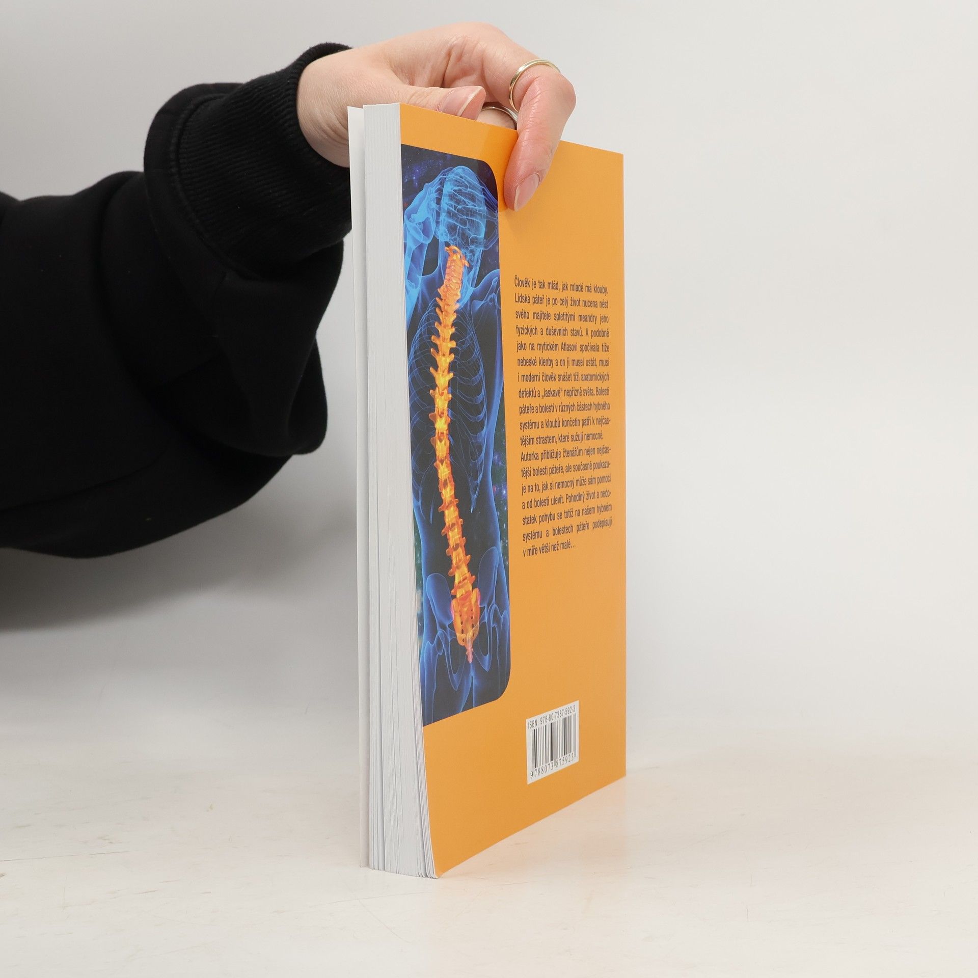 Člověk je tak mlád, jak mladé má klouby. Lidská páteř je po celý život nucena nést svého majitele spletitými meandry jeho fyzických a duševních stavů. A podobně jako na mytickém Atlasovi spočívala tíže nebeské klenby a on ji musel ustát, musí i moderní člověk snášet tíži anatomických defektů a „laskavé“ nepřízně světa. Bolesti páteře a bolesti v různých částech hybného systému a kloubů končetin patří k nejčastějším strastem, které sužují nemocné. Autorka přibližuje čtenářům nejen nejčastější bolesti páteře, ale současně poukazuje na to, jak si nemocný může sám pomoci a od bolesti ulevit. Pohodlný život a nedostatek pohybu se totiž na našem hybném systému a bolestech páteře podepisují v míře větší než malé…