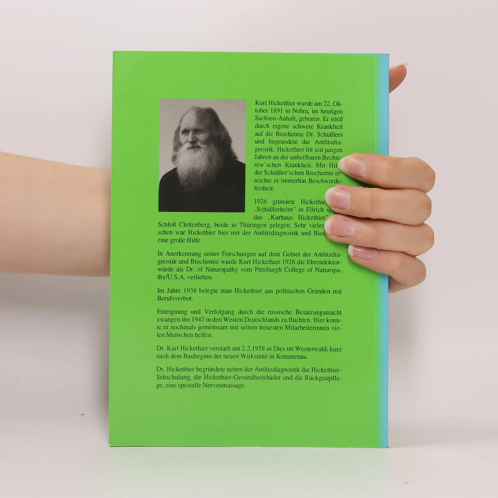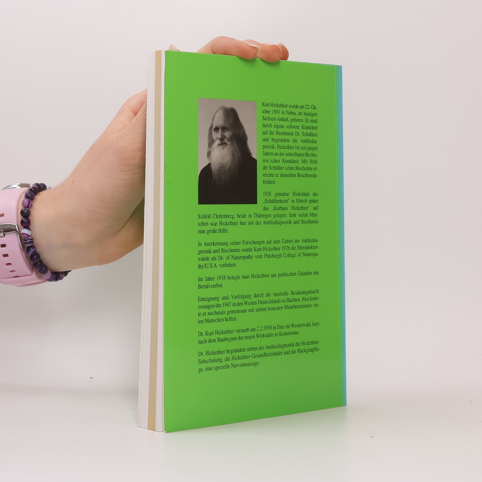 Eine leicht verständliche Einführung in die biochemische Heilweise Dr. med. Schüßlers, genannt Schüßler-Salze. Der große Wert dieses Buches liegt in der einfachen, verständlichen Beschreibung der Wirkungsweise aller biochemischen Mittel. Das alphabetische Krankheitsregister nimmt einen weiten Raum ein und ist von großer Bedeutung für alle, welche die Antlitzdiagnostik noch nicht beherrschen. Außerdem enthält das Buch einen Anhang über Gesundheitspflege und Lebensreform.