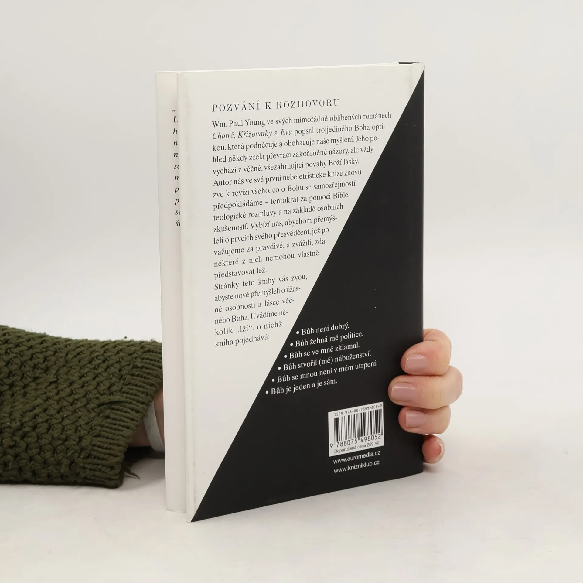 Slavný bestsellerový romanopisec Paul Young bývá často za své názory na Boha označován za kacíře. V této knize představuje dvacet osm běžně užívaných společenských názorů na Boha, které považuje za nesprávné a které nás podle něj od jeho podstaty oddalují. S osobitým humorem a anekdotami z vlastního života zde znovu otevírá známá témata, jako jsou hřích, peklo, víra, lidská práva, politika a jiné a pomáhá nám objevit hloubku Boha skrze odlišnou perspektivu.
